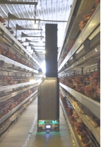 蛋鸡舍智能巡检机器人能实现鸡舍环境、鸡只状态无人化巡检,监测鸡舍不同位置各层笼具内的温度、相对湿度、光照强度和有害气体浓度等环境数据,智能识别各层鸡只状态、定位死鸡分布点,并上传数据至蛋鸡养殖数字化平台,减少捡死鸡等高强度、低效率工作的人工投入。巡检定位精度应≤25mm,巡检速度达1m/s。