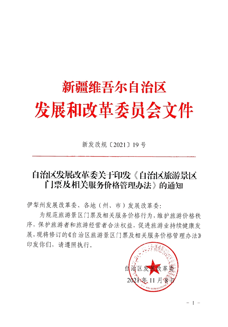 自治区发展改革委关于印发《自治区旅游景区门票及相关服务价格管理办法》的通知