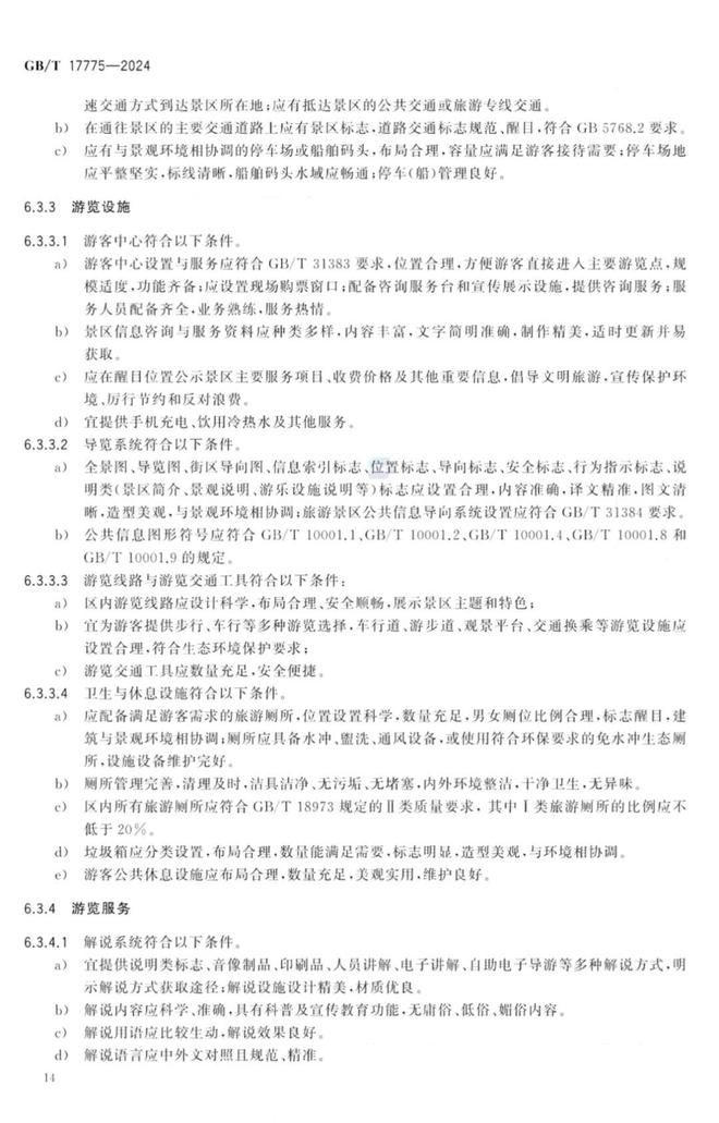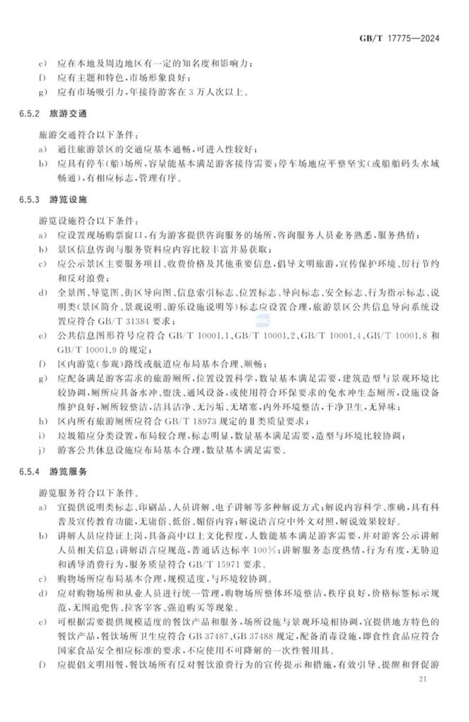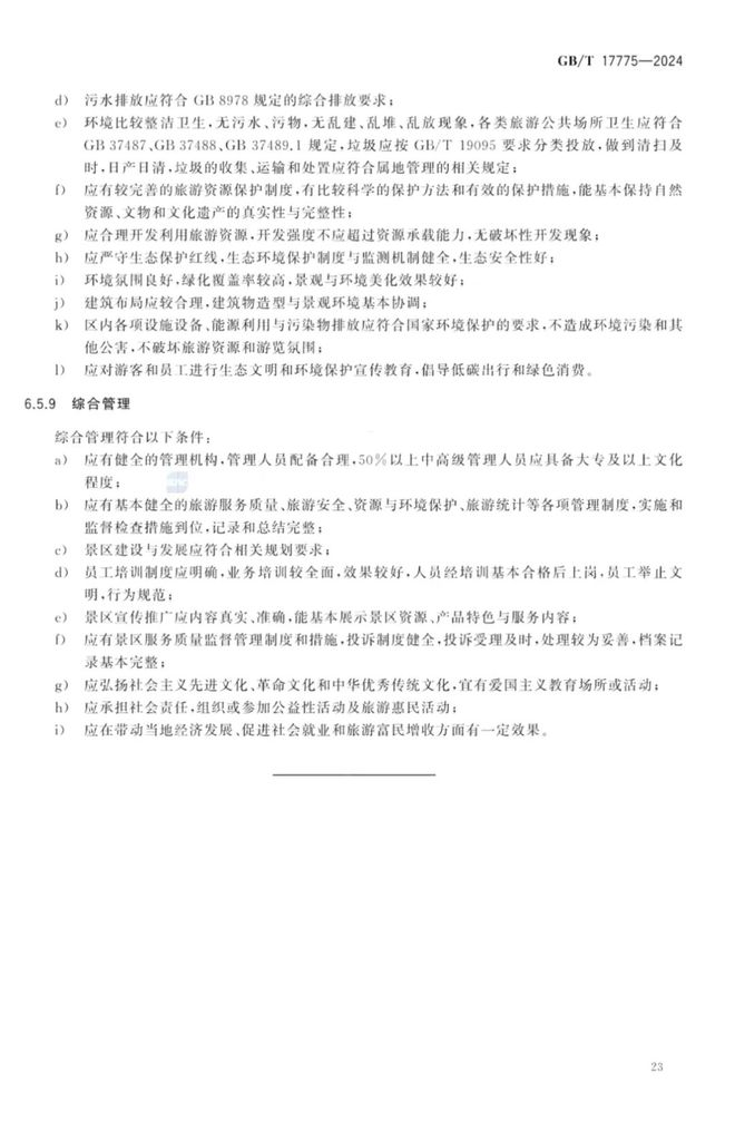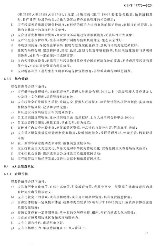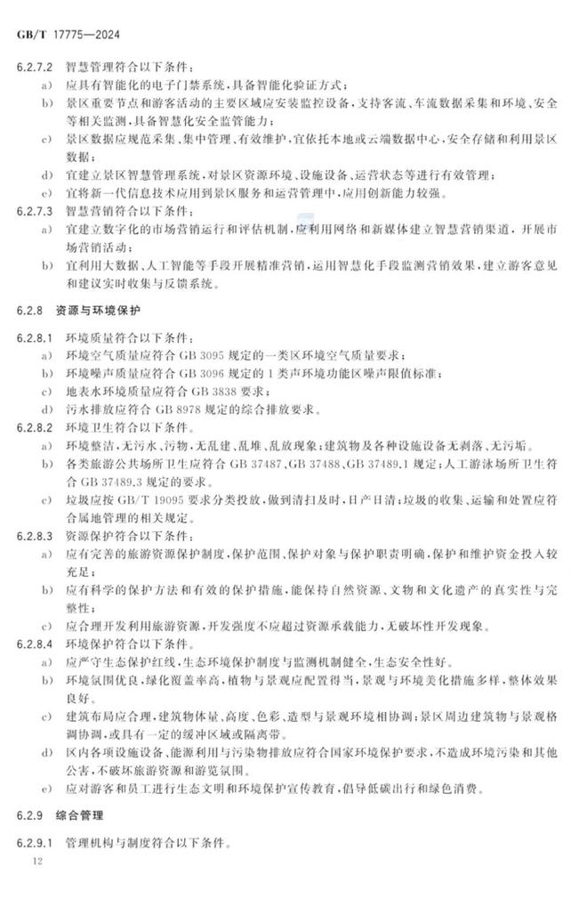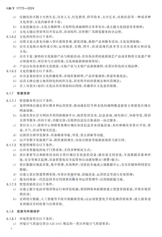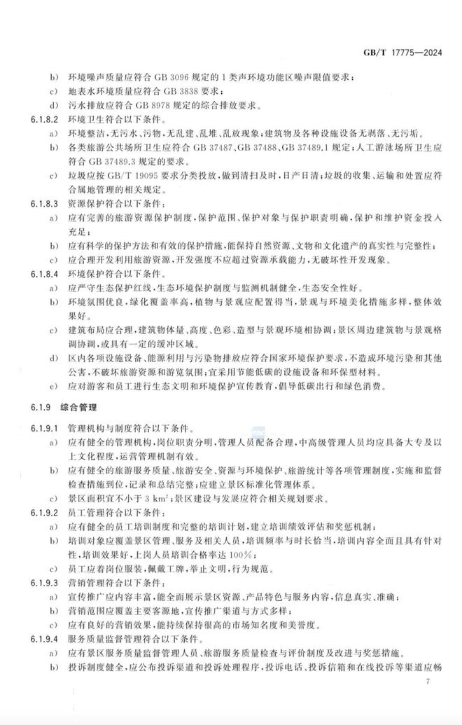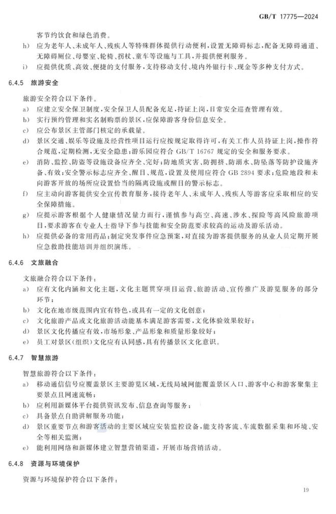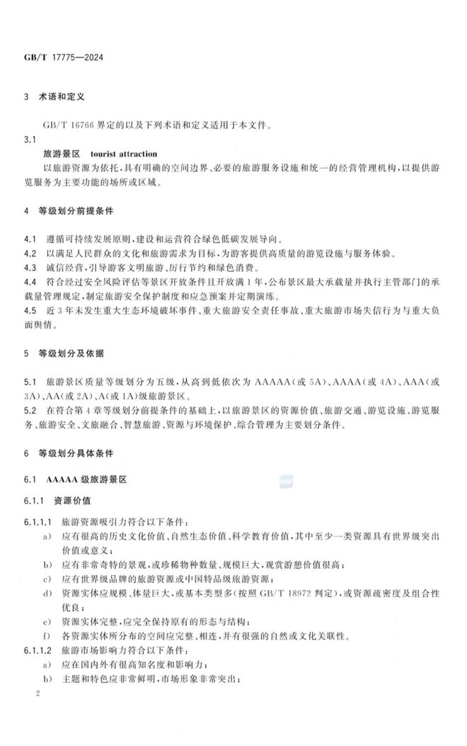 经国标委批准,新版国家标准《旅游景区质量等级划分》(GB/T17775-2024)将于2025年3月1日起实施。全文如下: