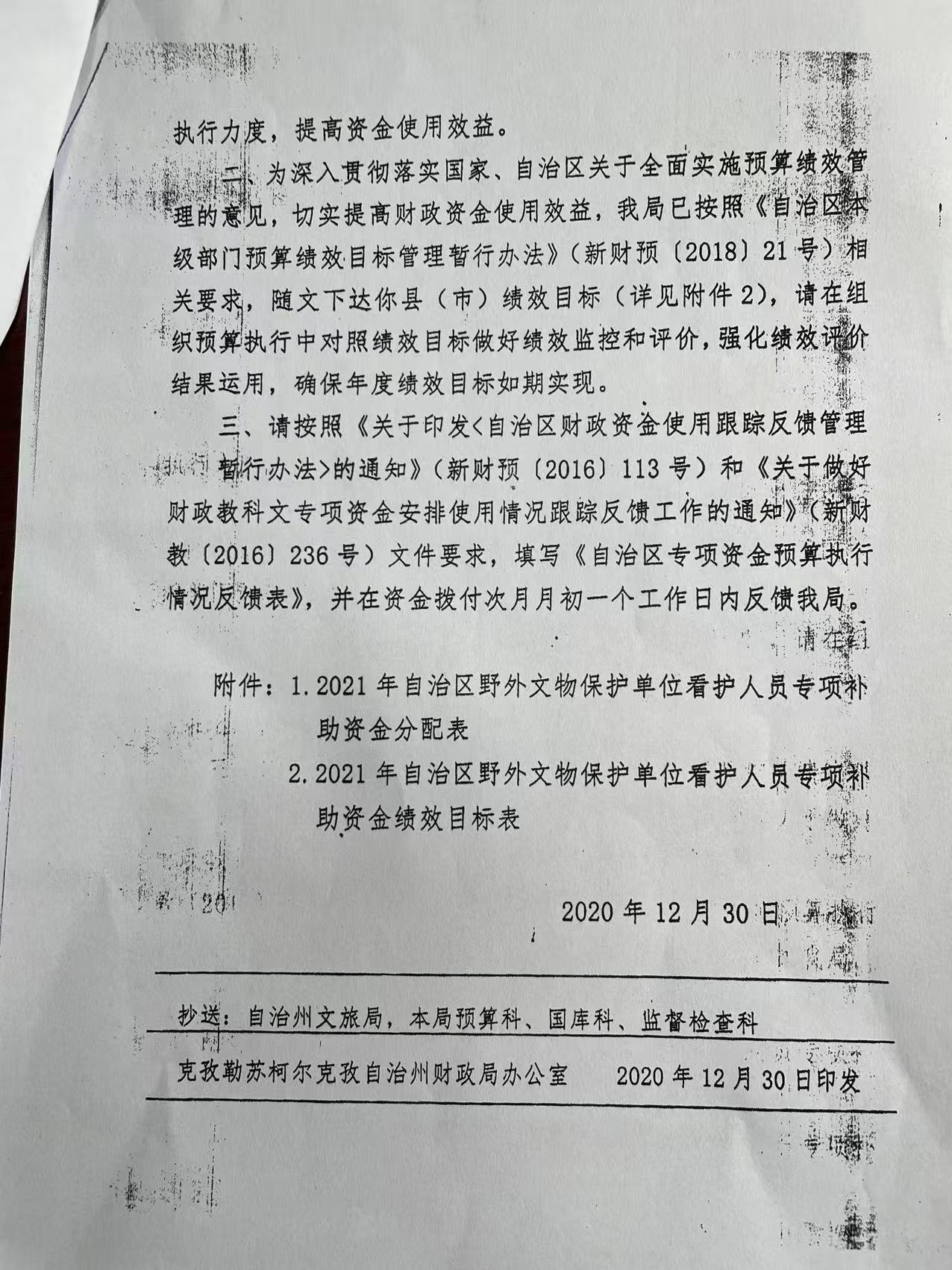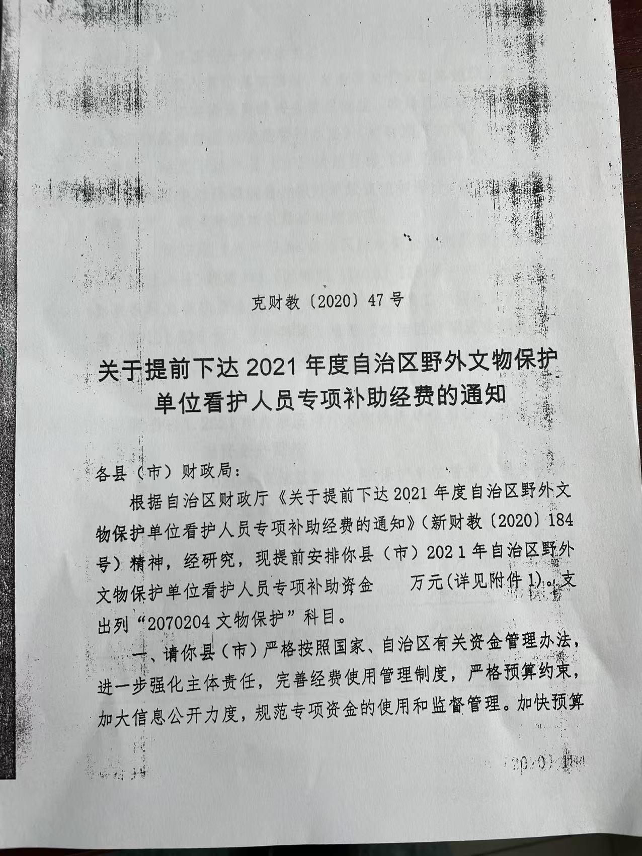 关于提前下达2021年度自治区野外文物保护单位看护人员专列补助经费的通知