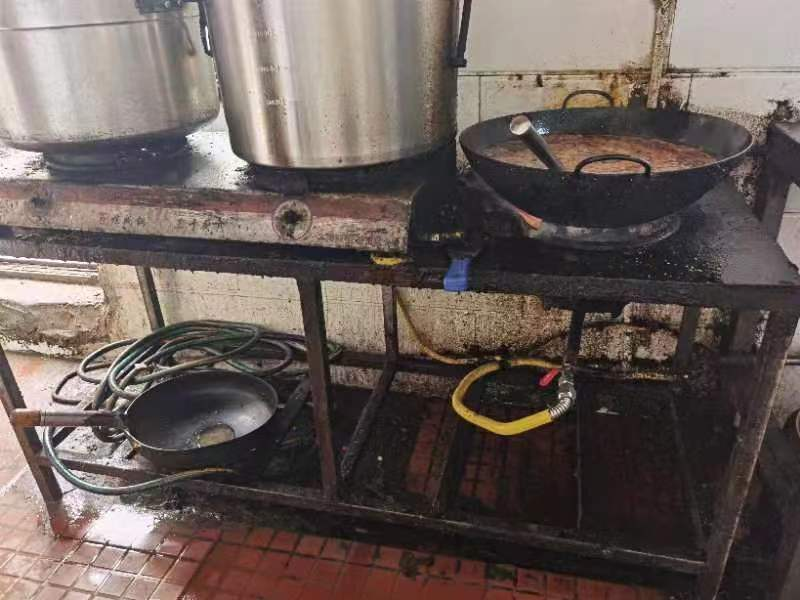 上榜理由:厨房异味严重,加工操作区域卫生状况差、灶台区域杂乱,后厨烟罩、排风扇油污严重未及时清洗更换,卫生死角多。
