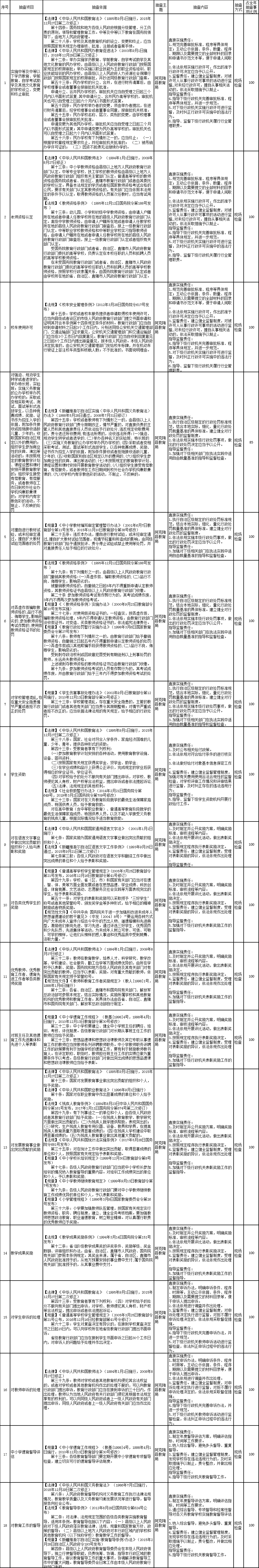 阿克陶县教育局随机检查清单