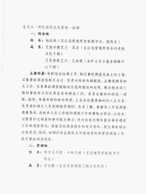 阿克陶县人民政府事故调查组