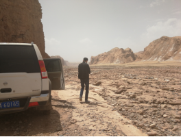 (1)经实地检查,从G315国道往其美干方向驱车约6个小时到过矿区,道路在河道里(见图1),通行十分困难,该探矿权内以往施工过大量的探槽(见图2)。