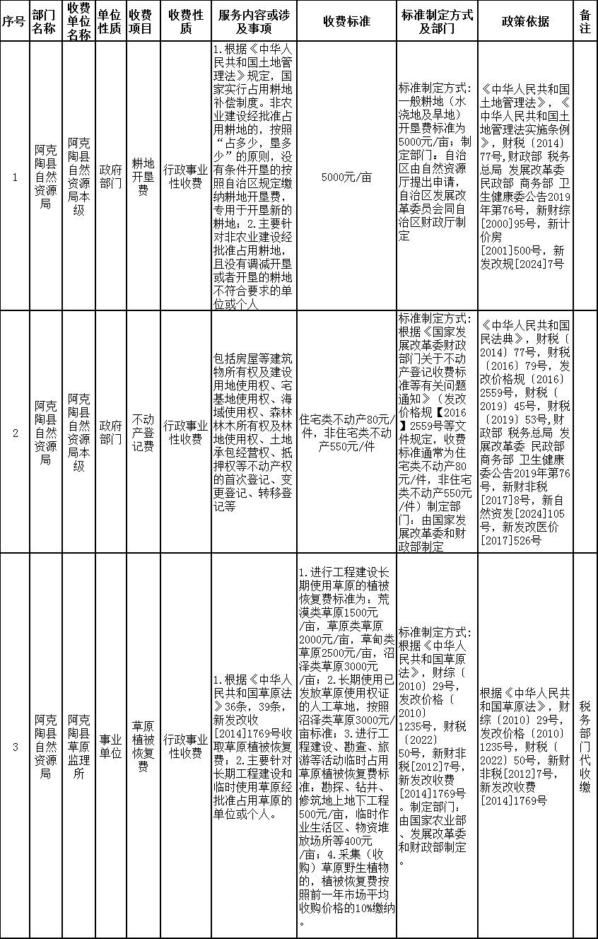 阿克陶县自然资源局及下属单位综合性涉企收费目录清单