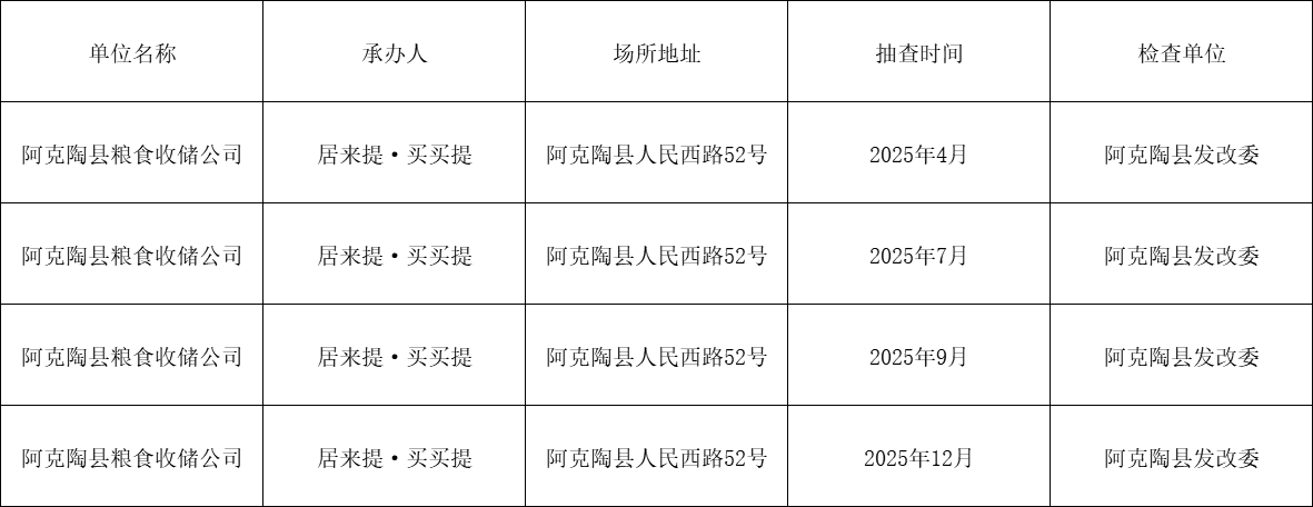 阿克陶县辖区“双随机、一公开”粮食安全2025年抽查计划