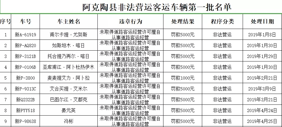 阿克陶县整治客运市场非法运营车辆曝光名单公告