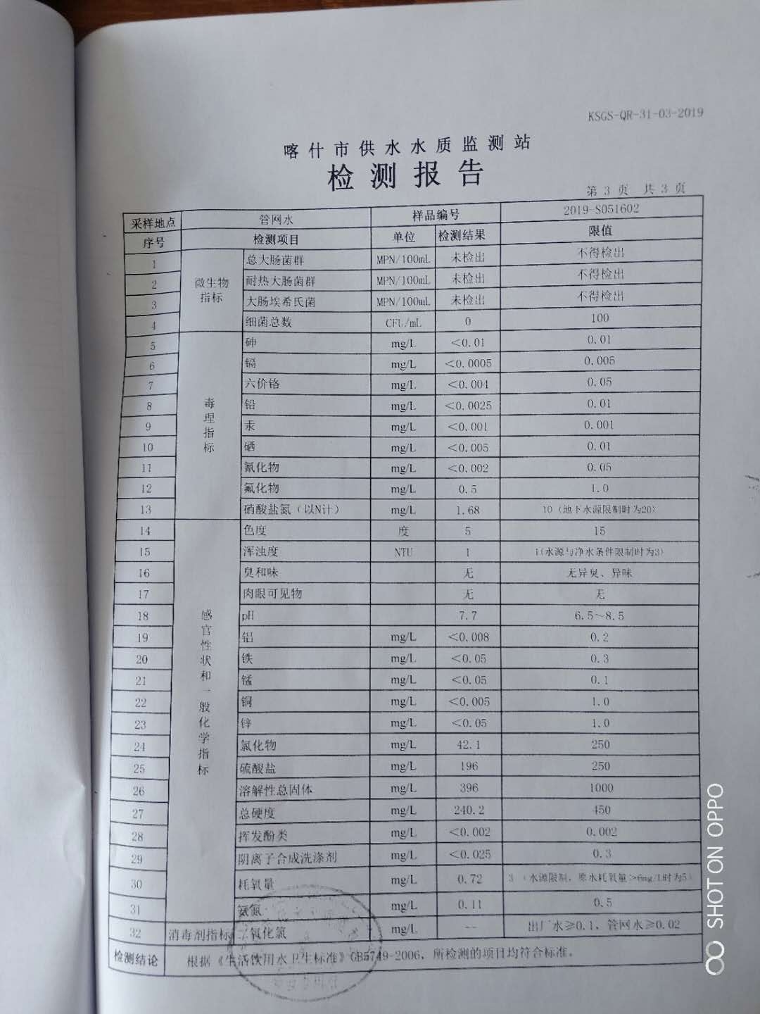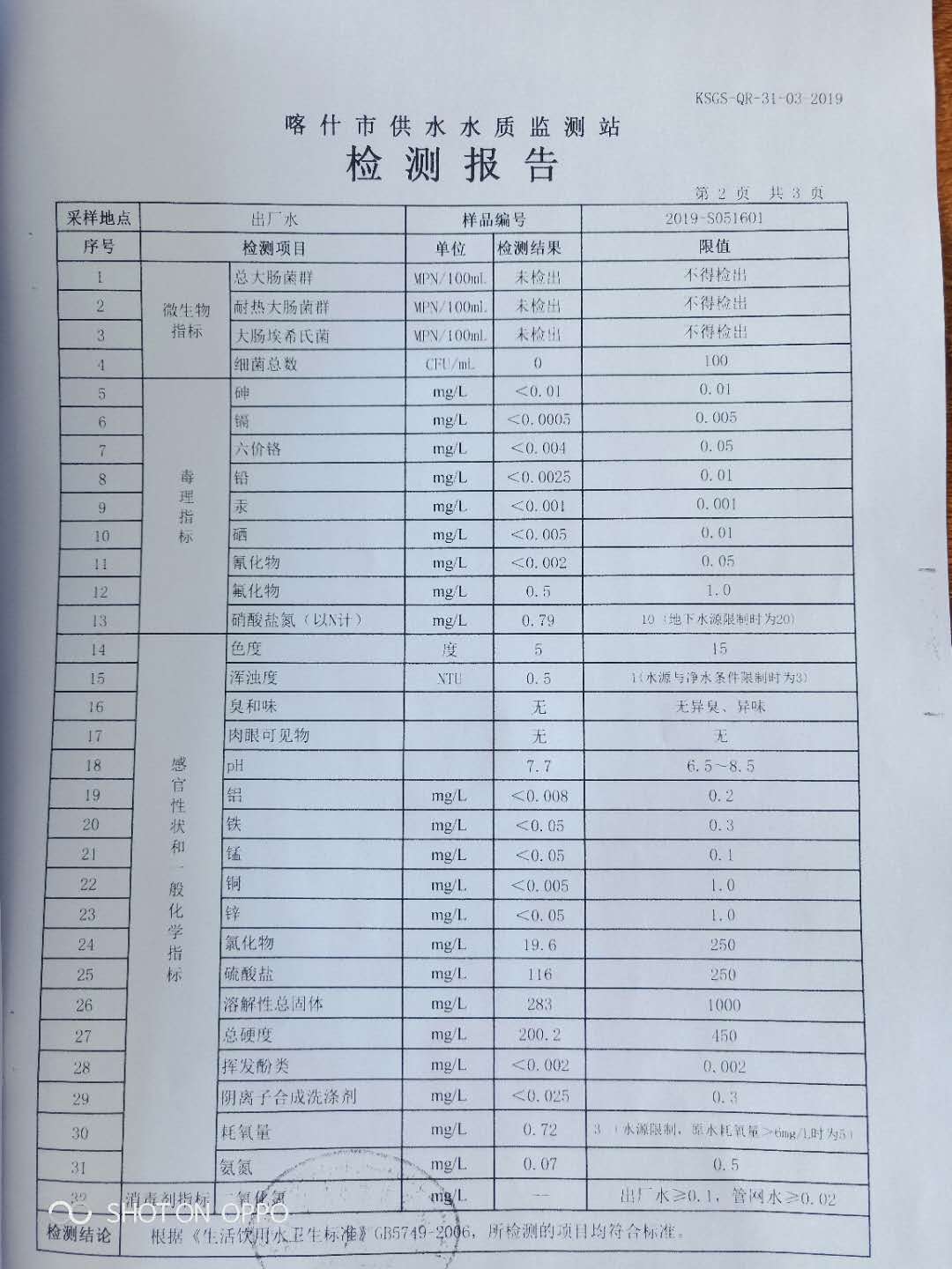 阿克陶县5月饮用水监测报告