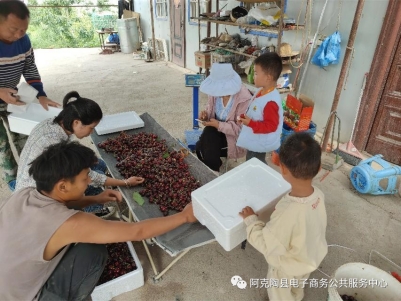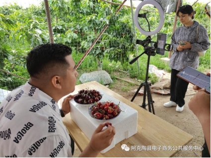 采摘节现场人头攒动,气氛热烈,游客亲口品尝从树上现摘下来的樱桃,赞不绝口,并通过直播镜头,为阿克陶樱桃代言。自阿克陶县实施电子商务进农村示范项目以来,阿克陶县电子商务公共服务中心已通过多种销售模式让广大网友了解、品尝到我县特色农产品,更吸引了不少创业达人热情的推介阿克陶县,将优质农产品通过镜头直播的形式推广至疆内外消费者眼前。