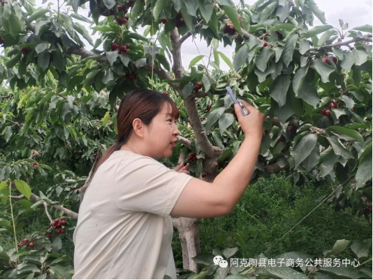 “又到了吃樱桃的季节,家乡的樱桃熟了,把樱桃送给大家,在果园里,我们现采现摘,红红的樱桃,厚厚的果实非常甜美,大家可以自己过来体验采摘的乐趣,也可以发往各地,欢迎大家来品尝!”阿克陶县抖音探店达人阿力木江透过直播镜头向大家介绍家乡的樱桃。