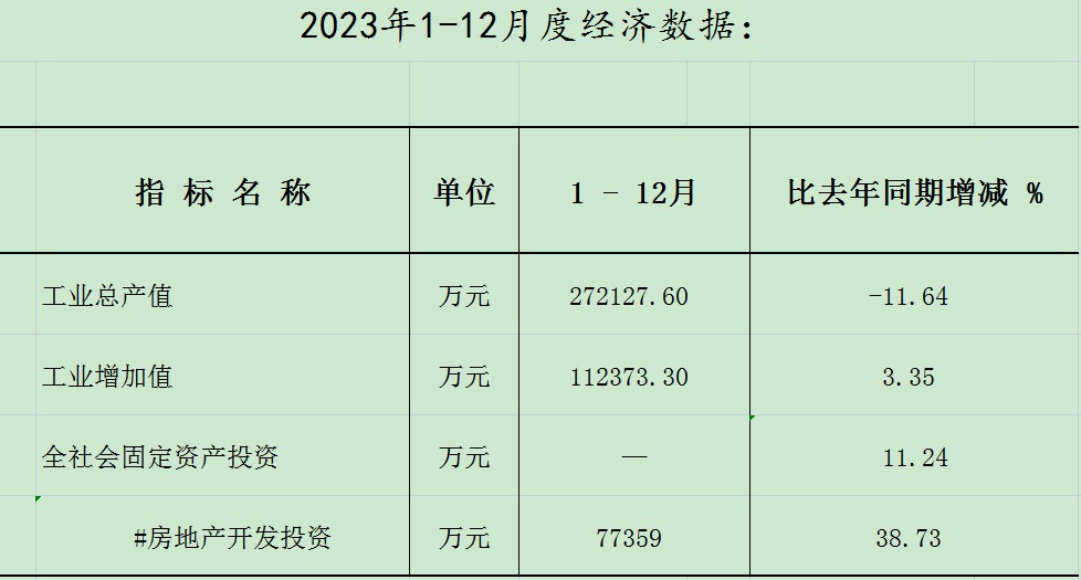 阿克陶县2023年1-12月度经济数据