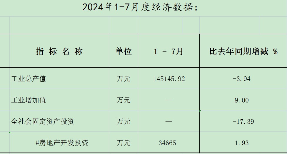 阿克陶县2024年1-7月度经济数据