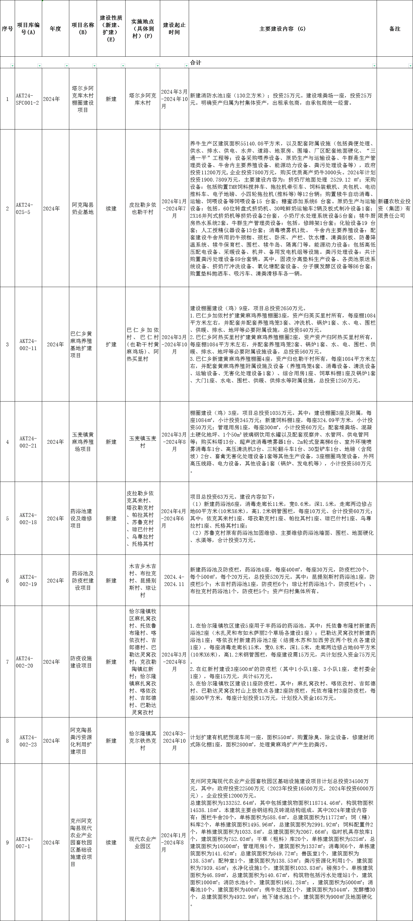 克州阿克陶县2024巩固拓展脱贫攻坚成果和乡村振兴项目计划库(年度计划)