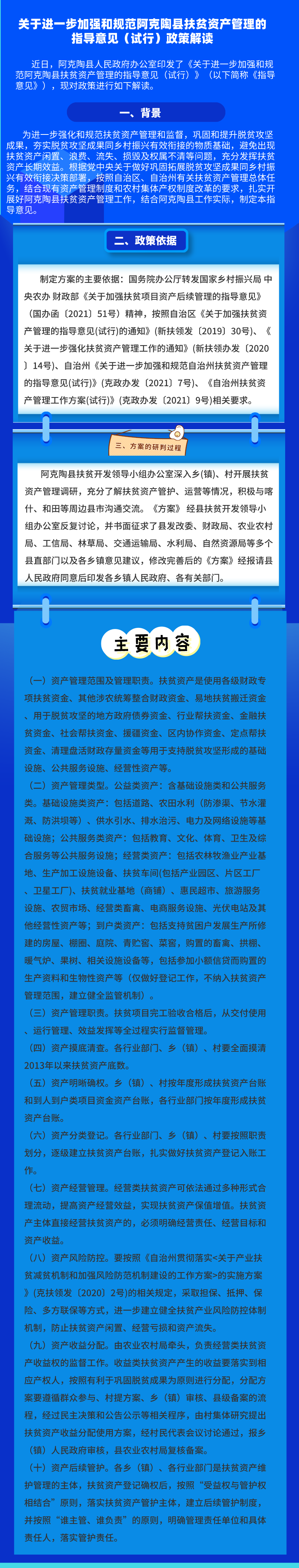 《关于进一步加强和规范阿克陶县扶贫资产管理的指导意见(试行)》政策解读