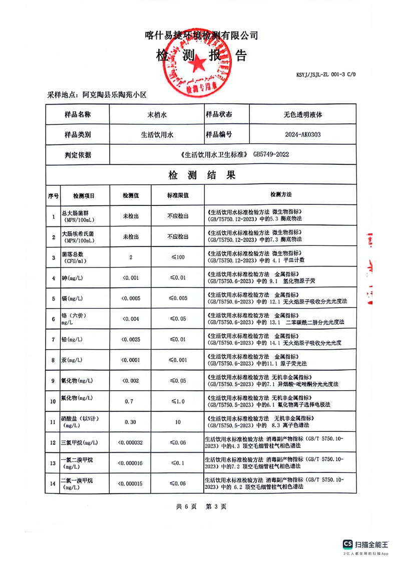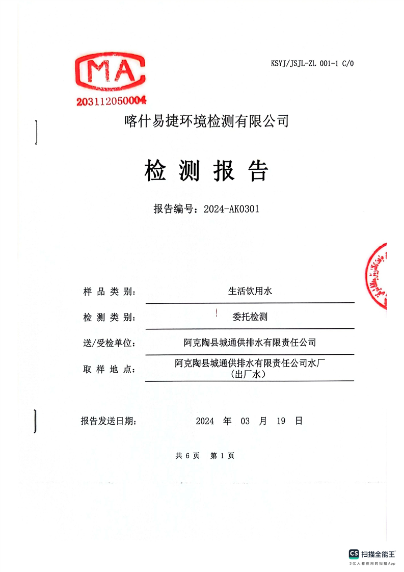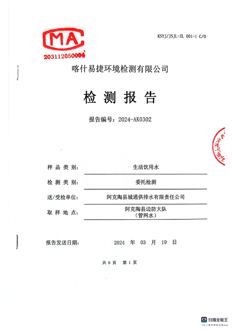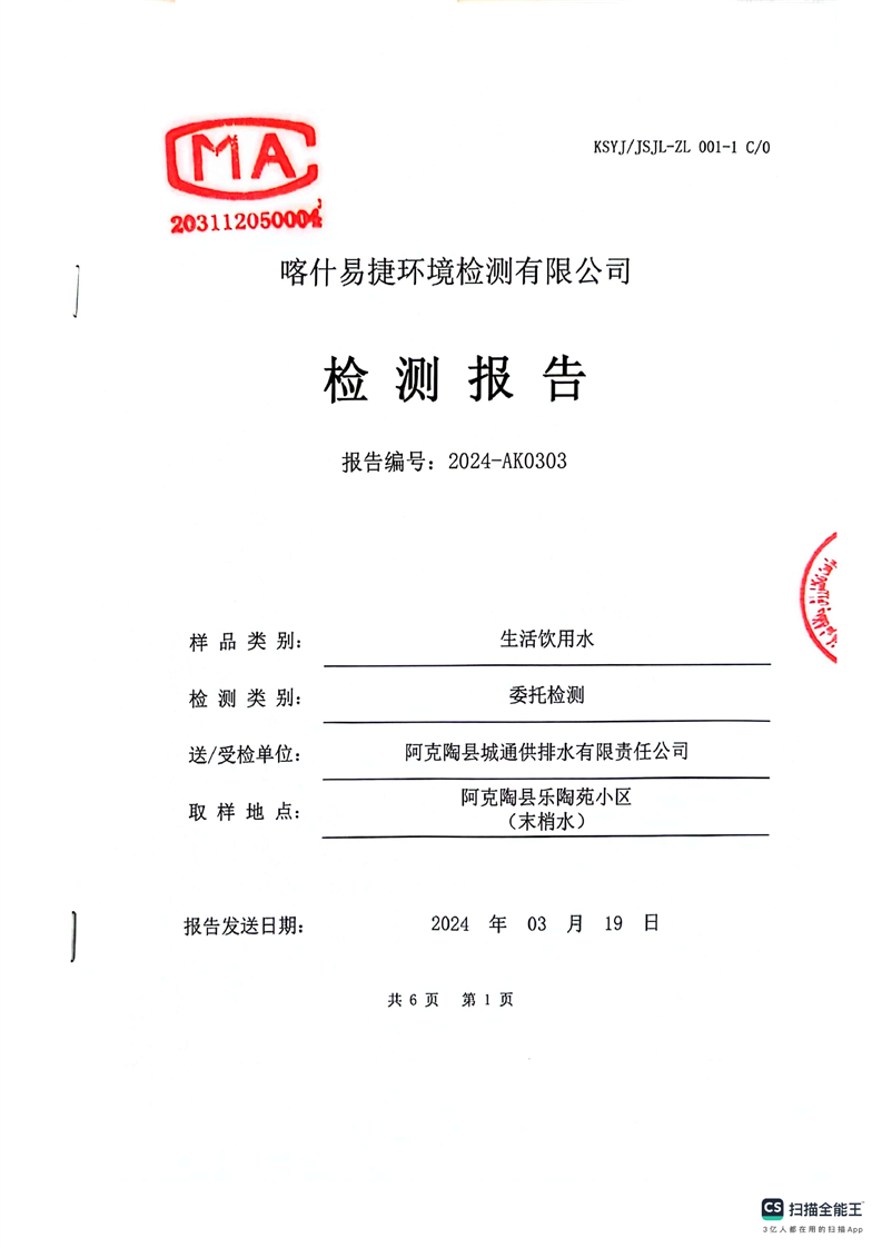 | 主 题 词 | 生活饮用水3月检测报告 | 成文日期 | 2024-03-19 12:33 |