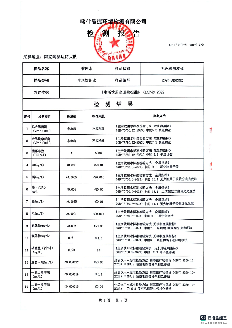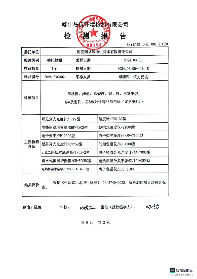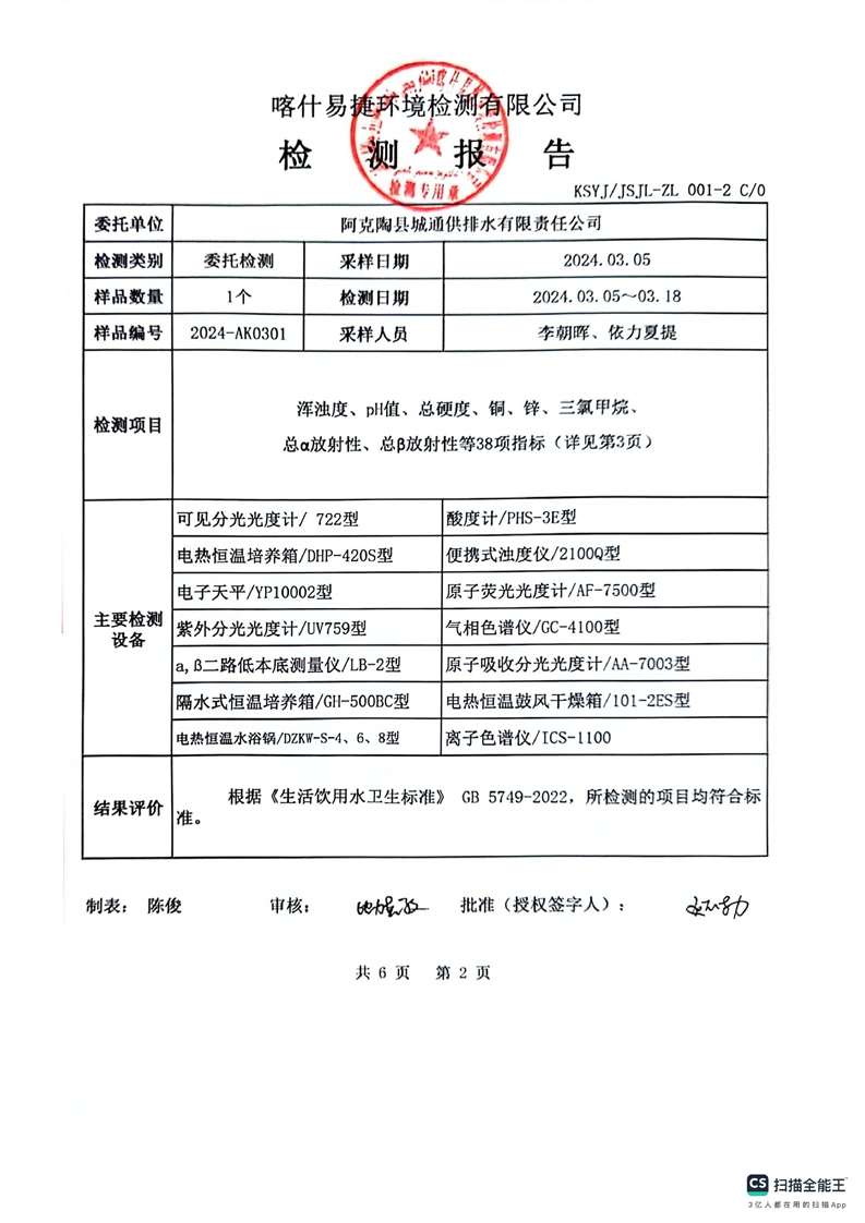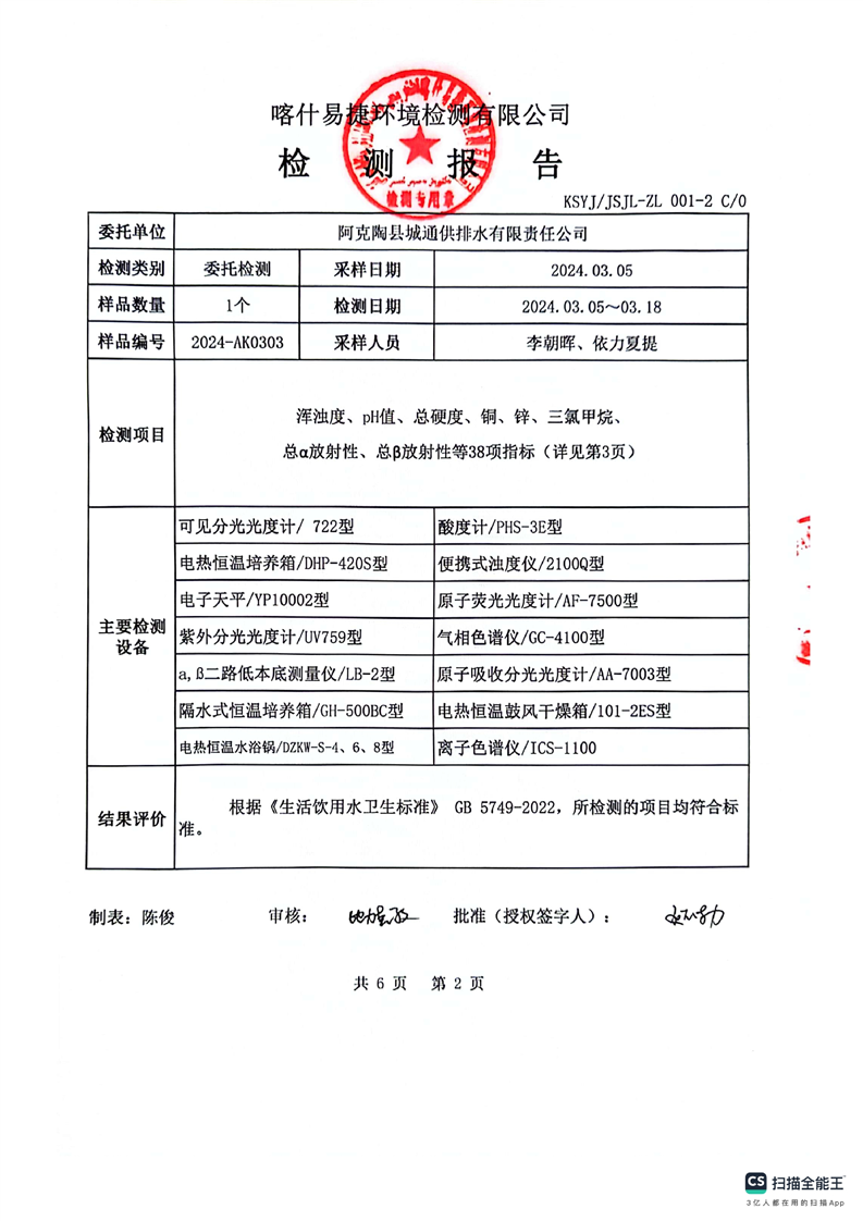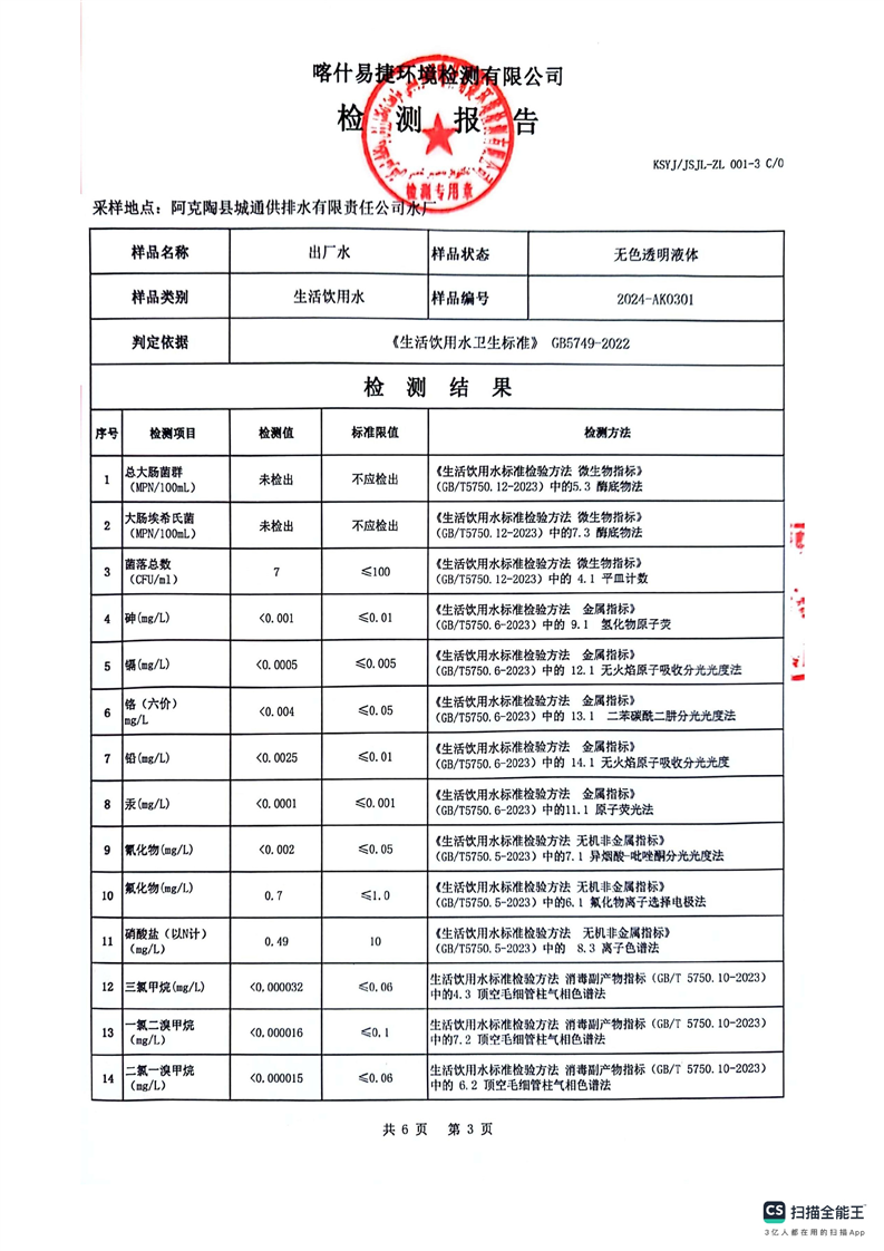 | 主 题 词 | 生活饮用水3月检测报告 | 成文日期 | 2024-03-19 12:33 |