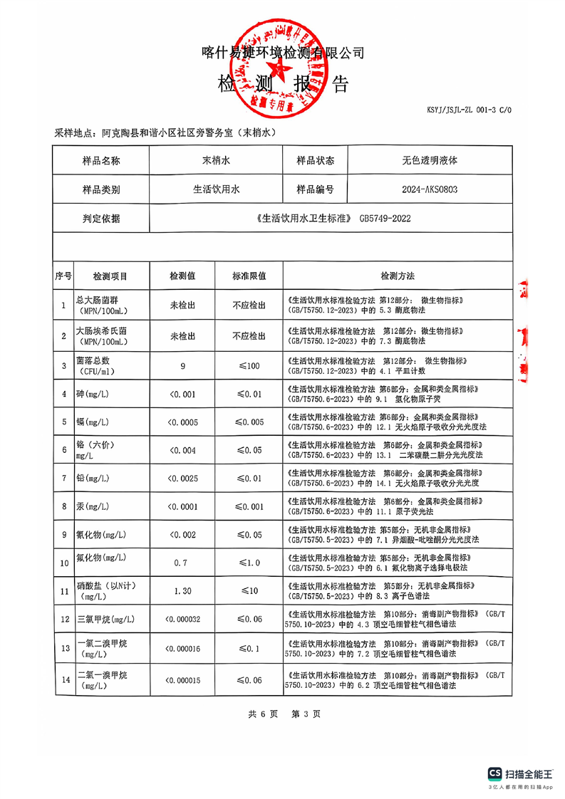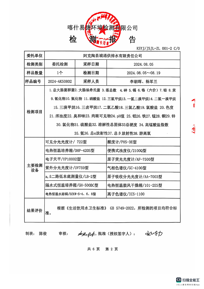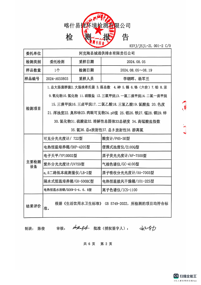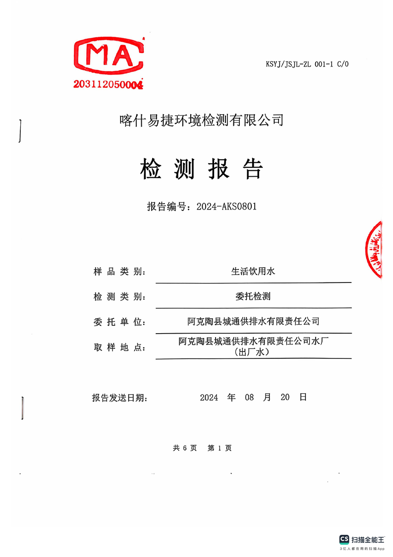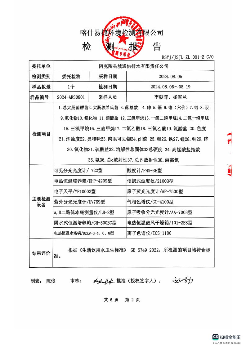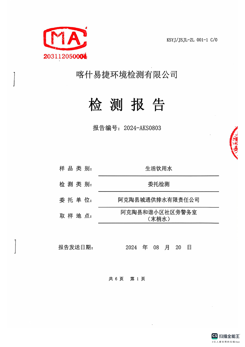 | 主 题 词 | 生活饮用水检测报告 | 成文日期 | 2024-08-20 12:50 |