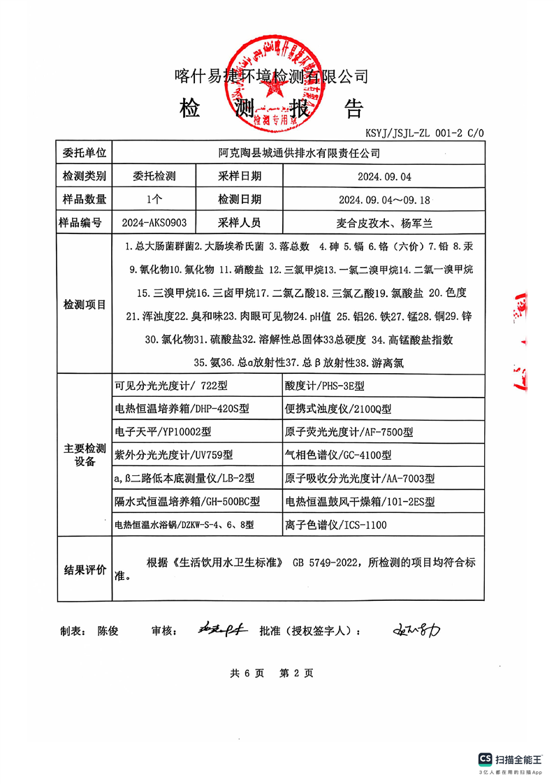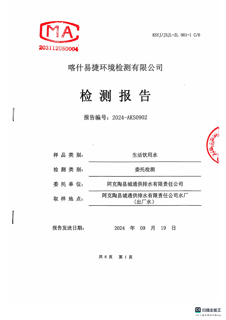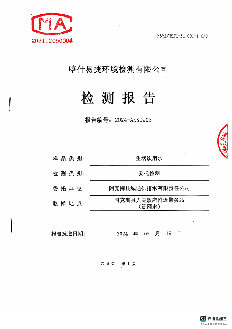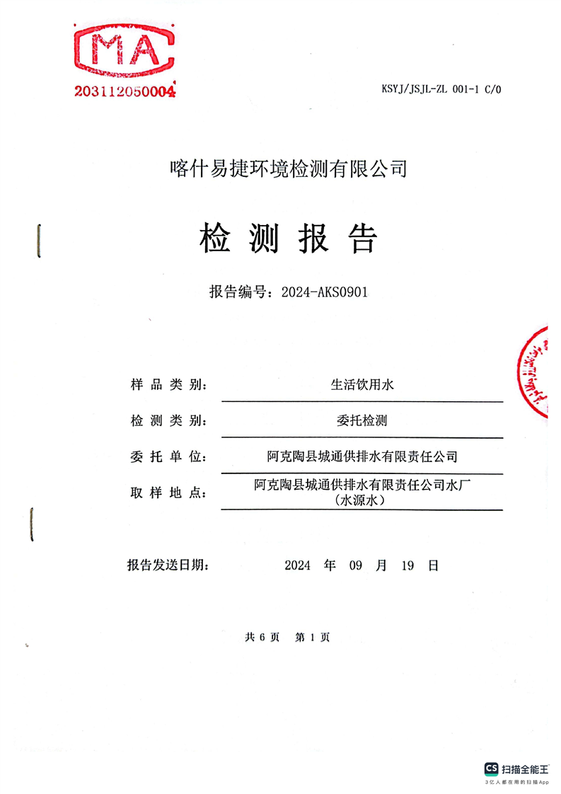 | 主 题 词 | 生活饮用水检测报告 | 成文日期 | 2024-09-19 12:53 |
