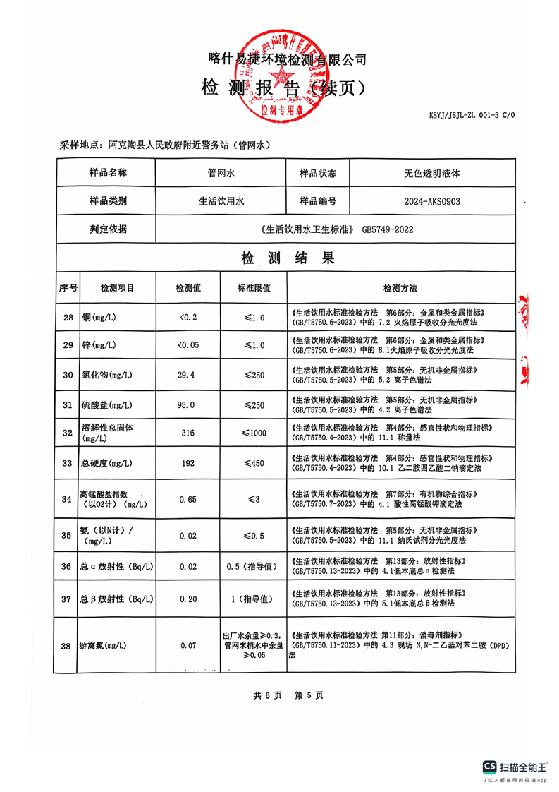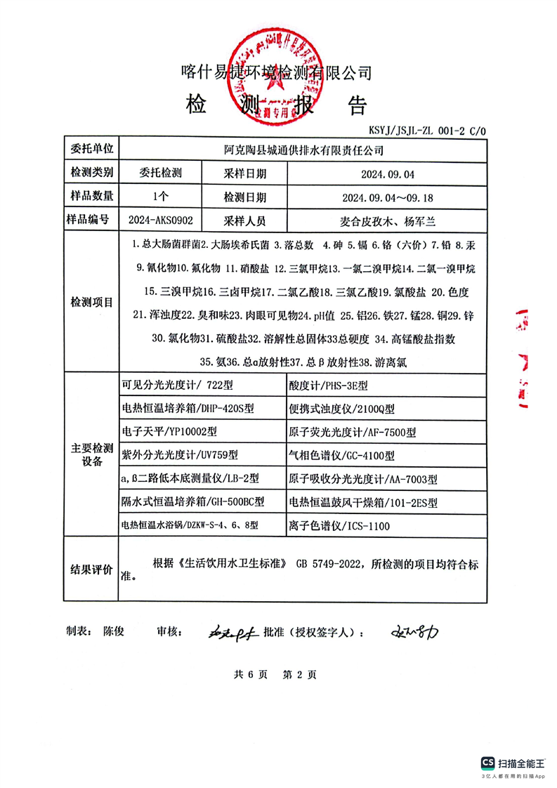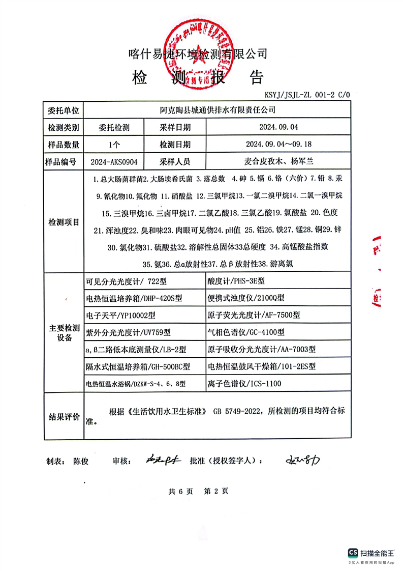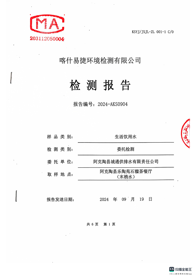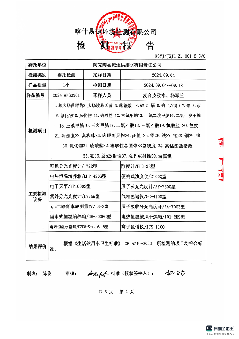 | 主 题 词 | 生活饮用水检测报告 | 成文日期 | 2024-09-19 12:53 |