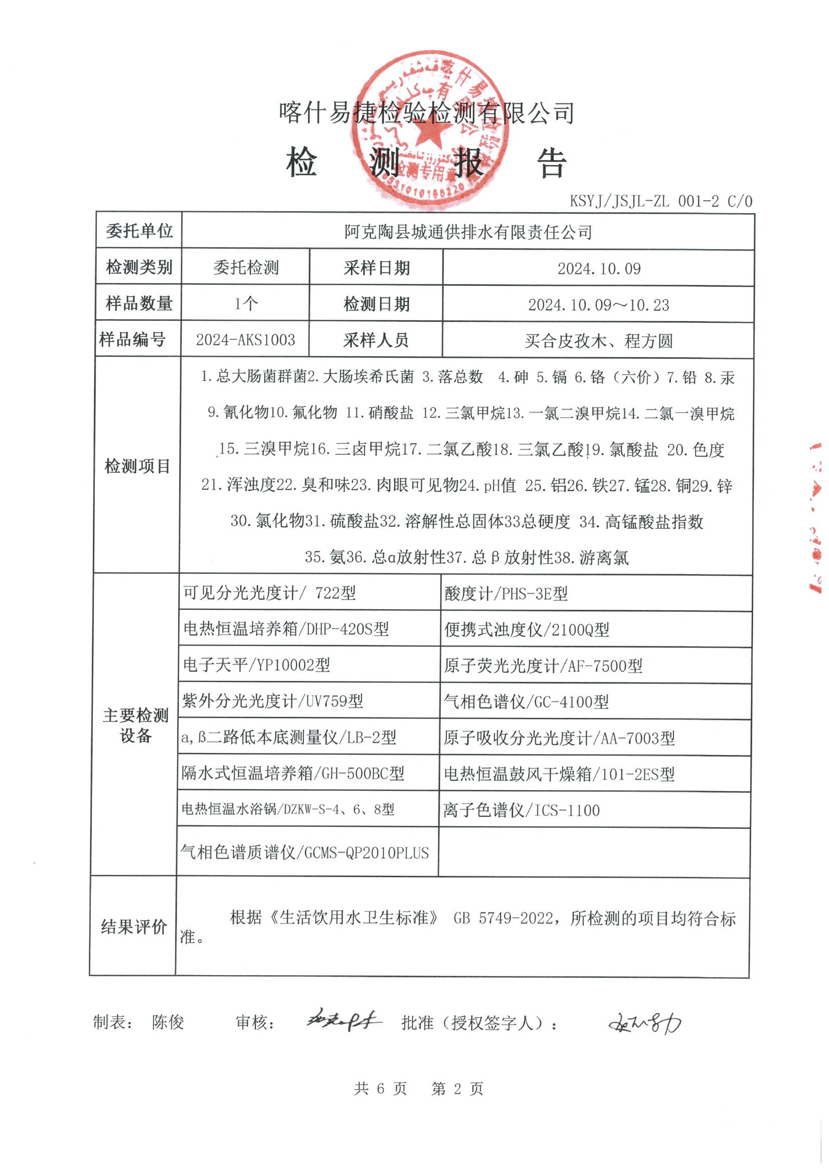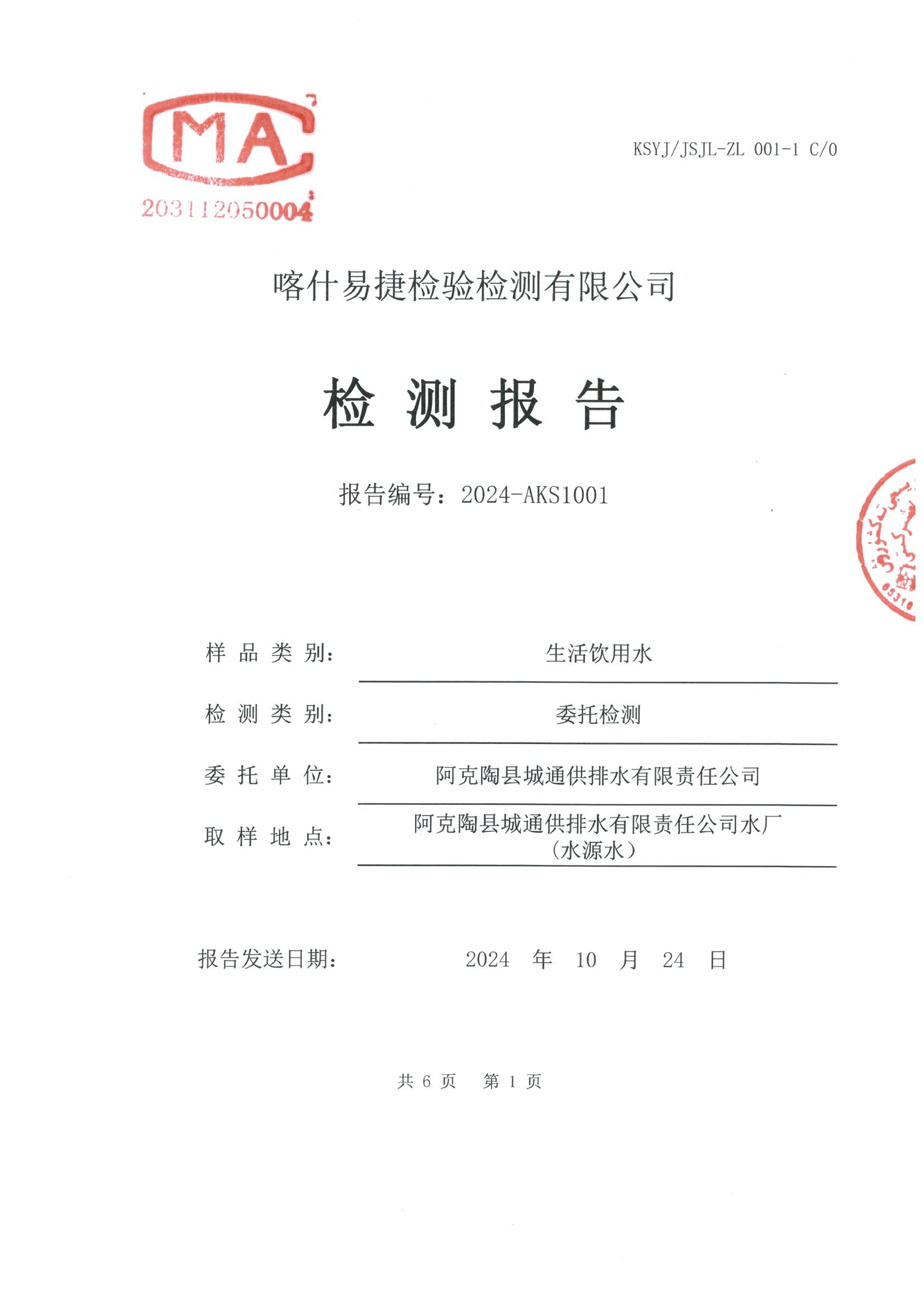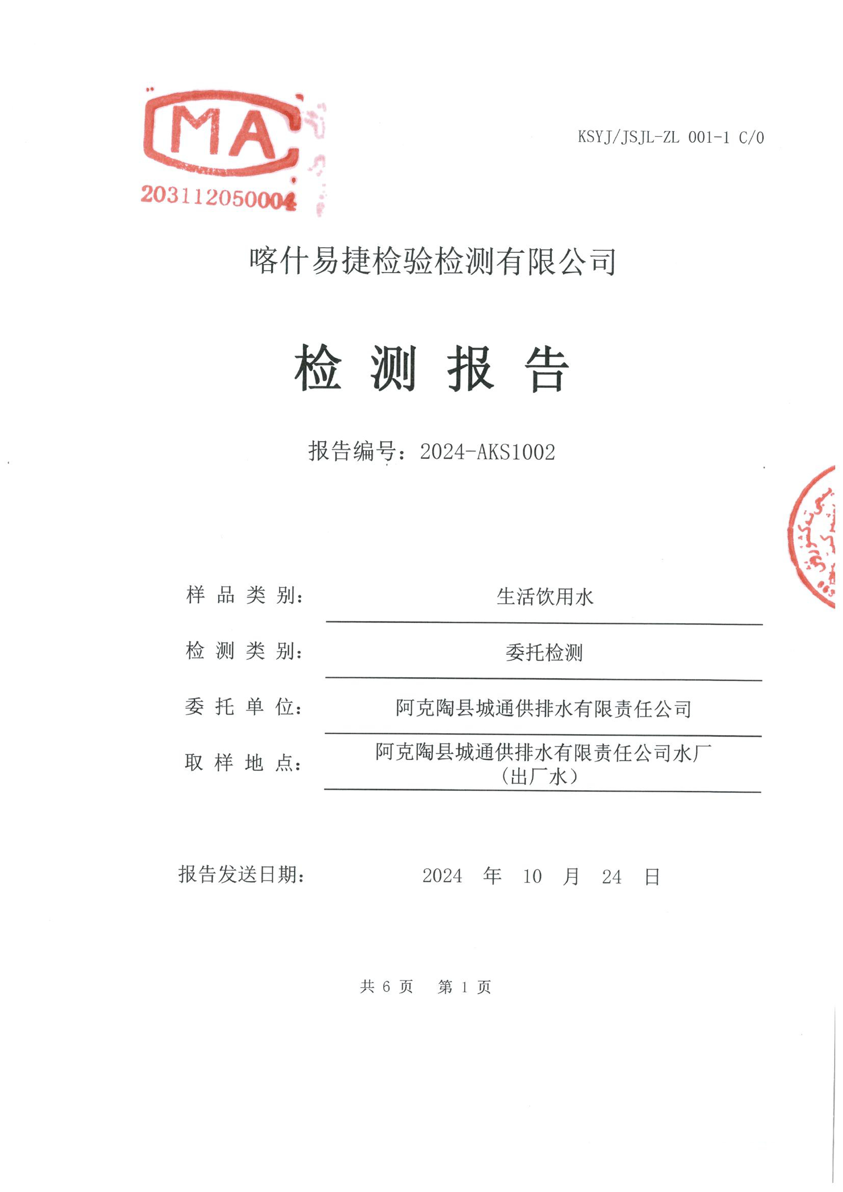 | 主 题 词 | 生活饮用水检测报告 | 成文日期 | 2024-10-24 18:13 |