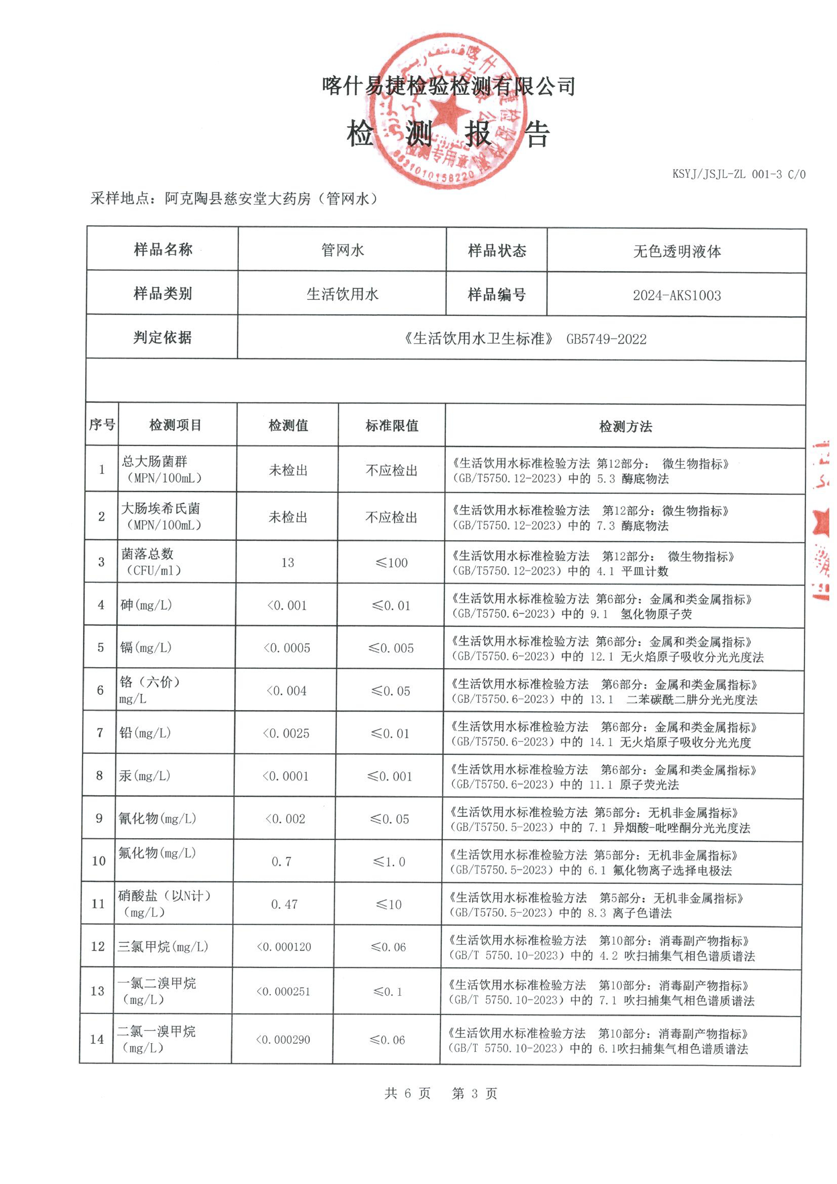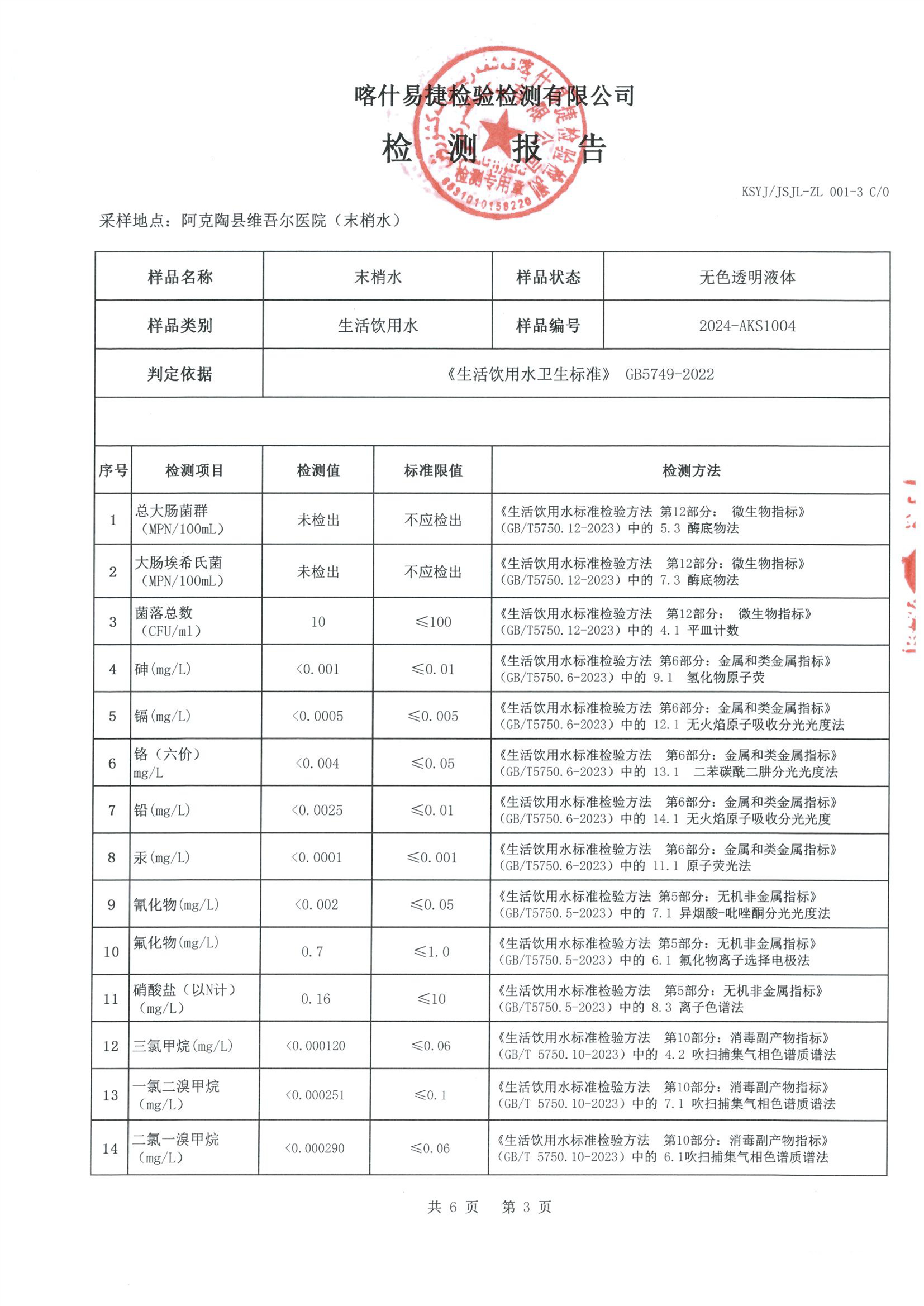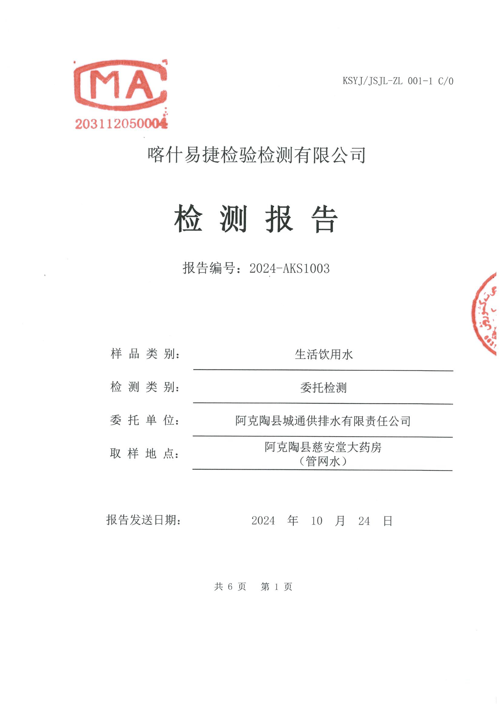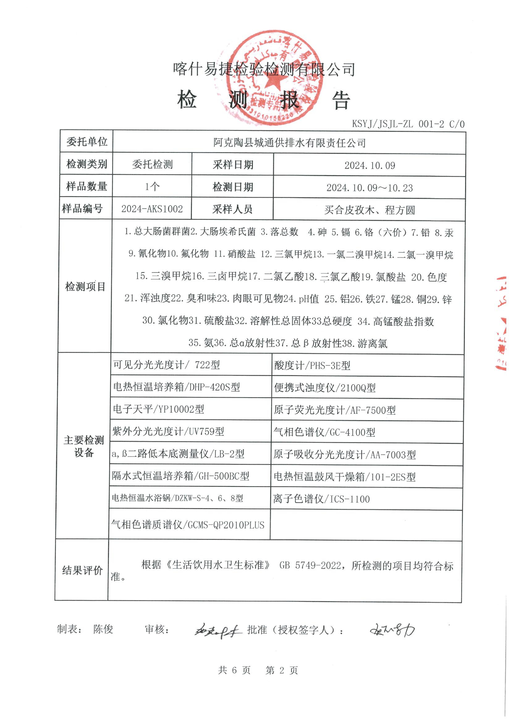 | 主 题 词 | 生活饮用水检测报告 | 成文日期 | 2024-10-24 18:13 |