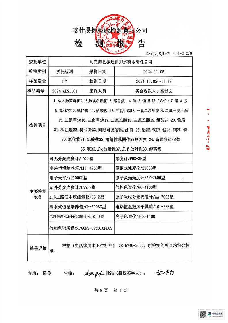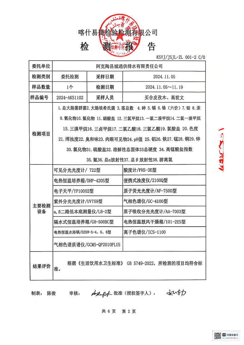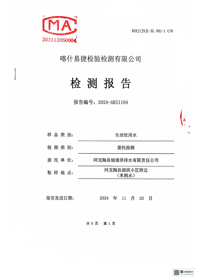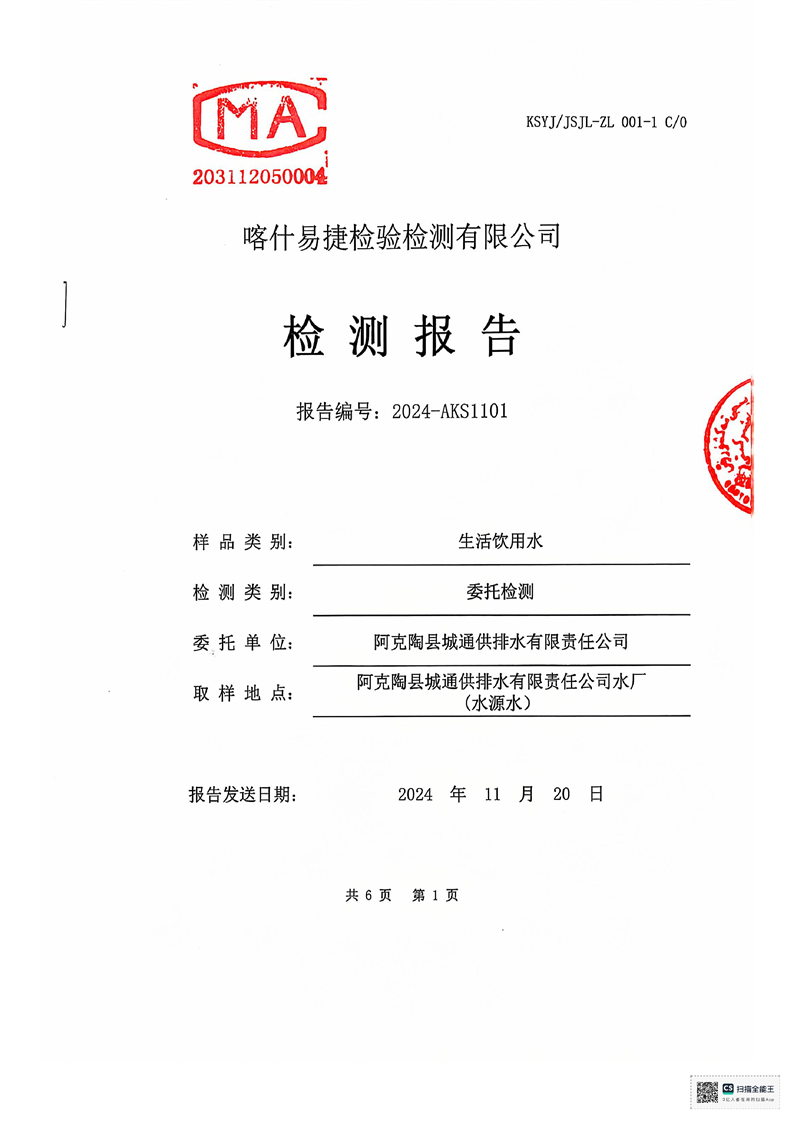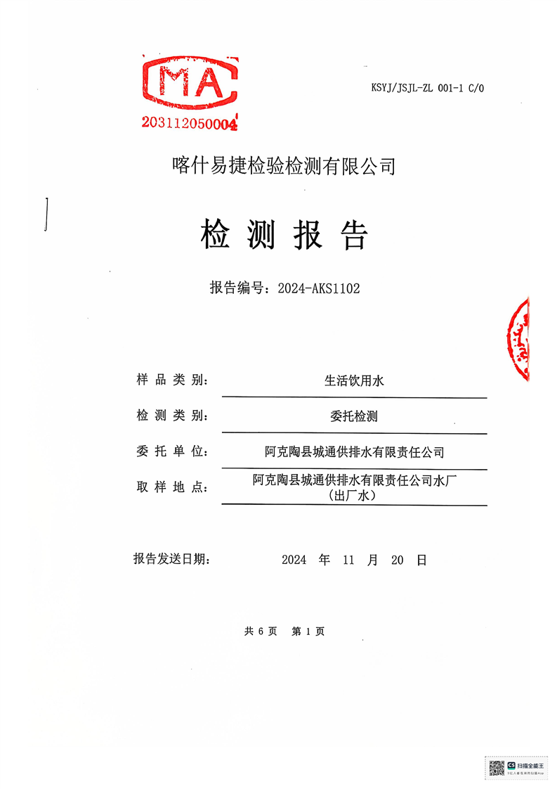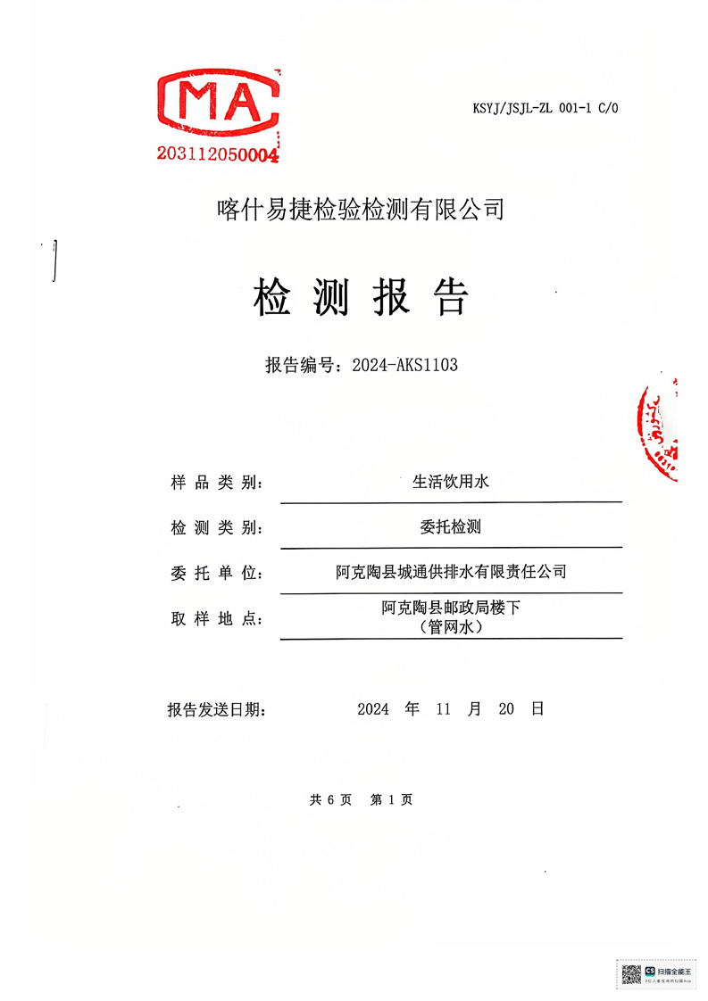 | 主 题 词 | 生活饮用水检测报告 | 成文日期 | 2024-11-20 18:08 |