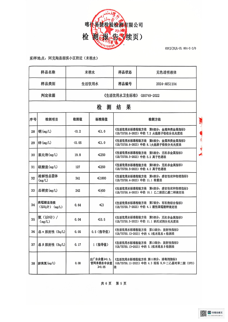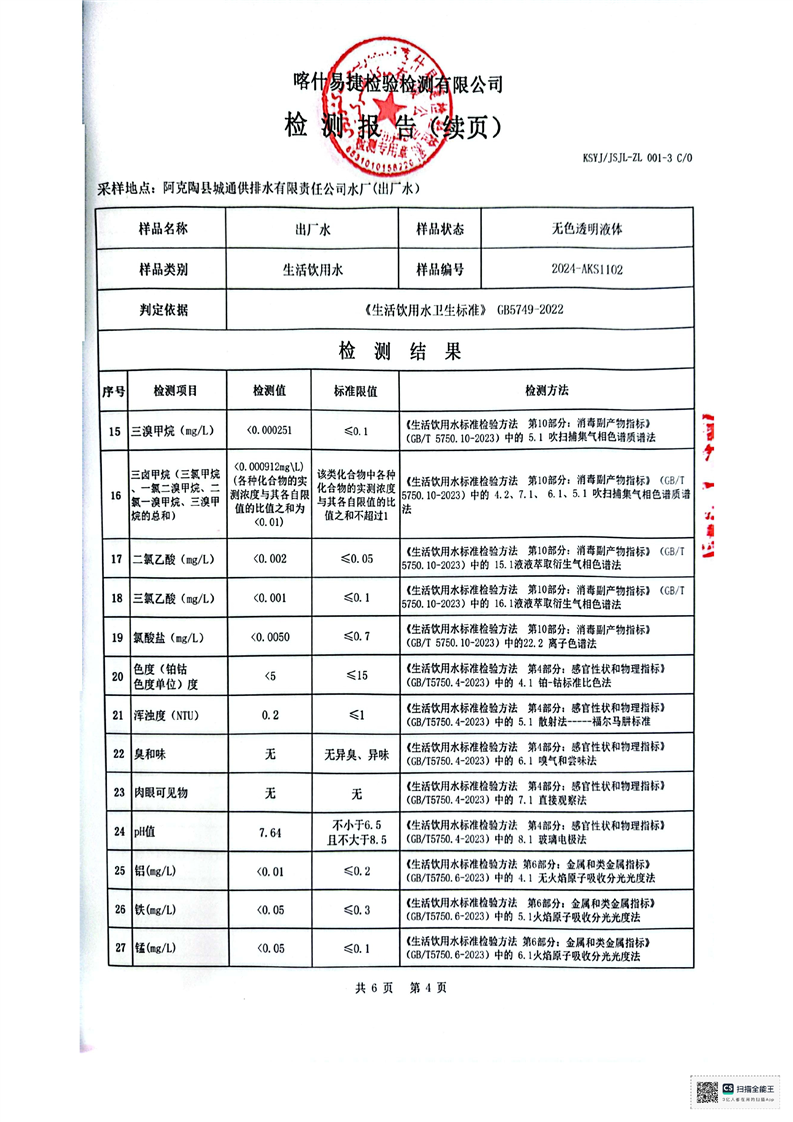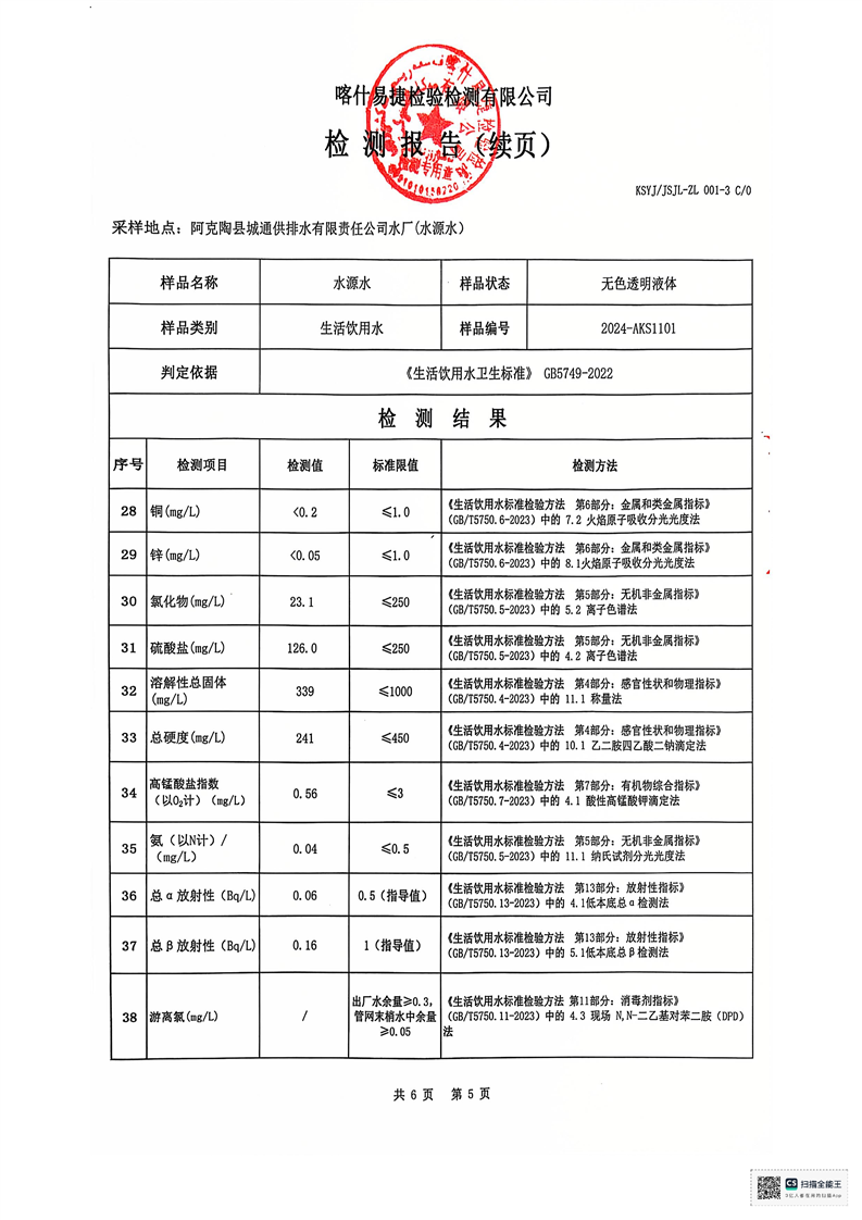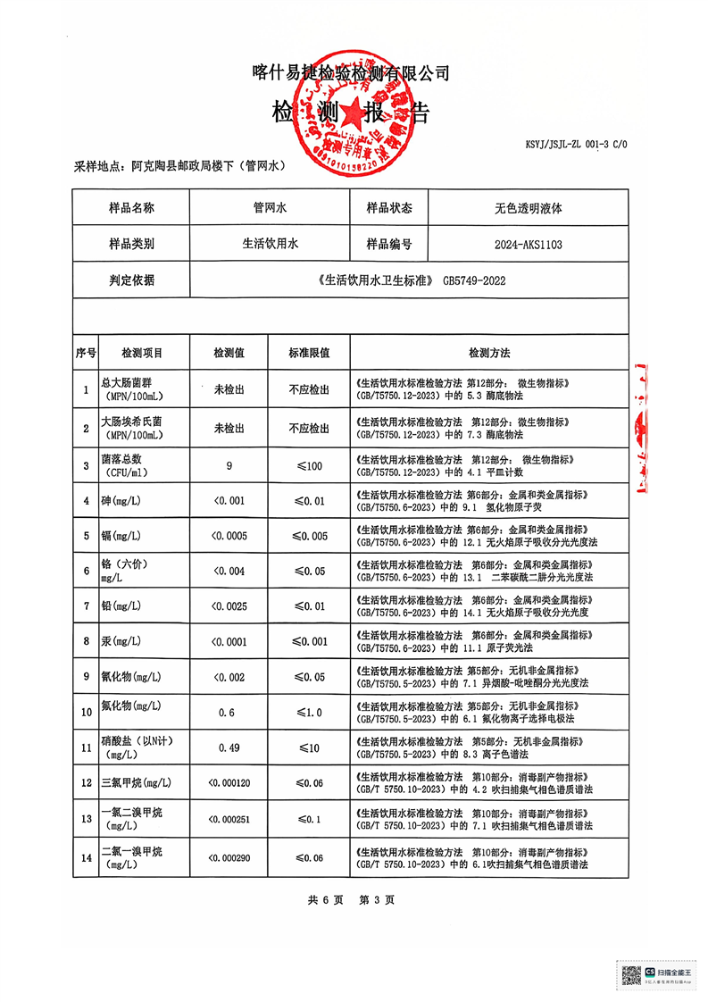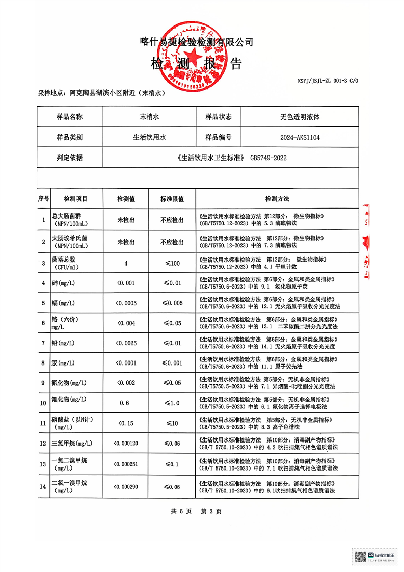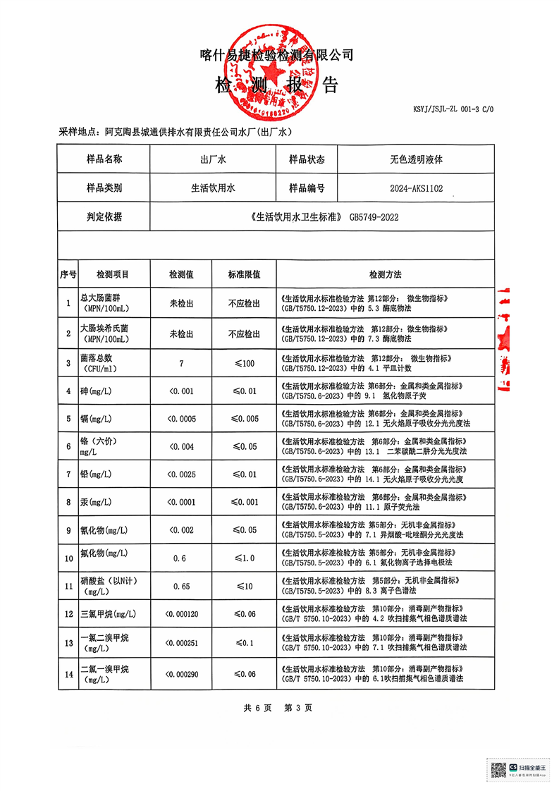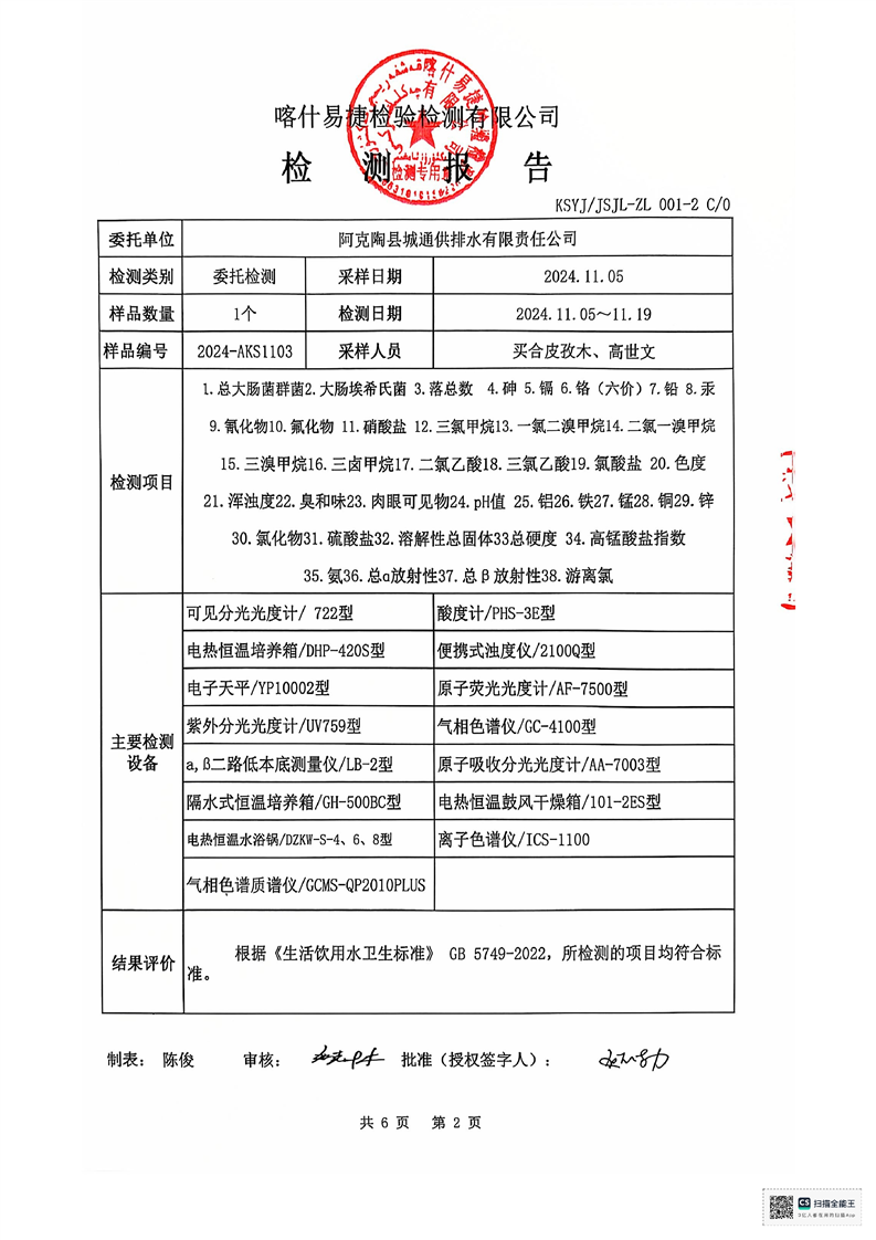 | 主 题 词 | 生活饮用水检测报告 | 成文日期 | 2024-11-20 18:08 |