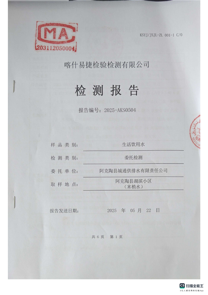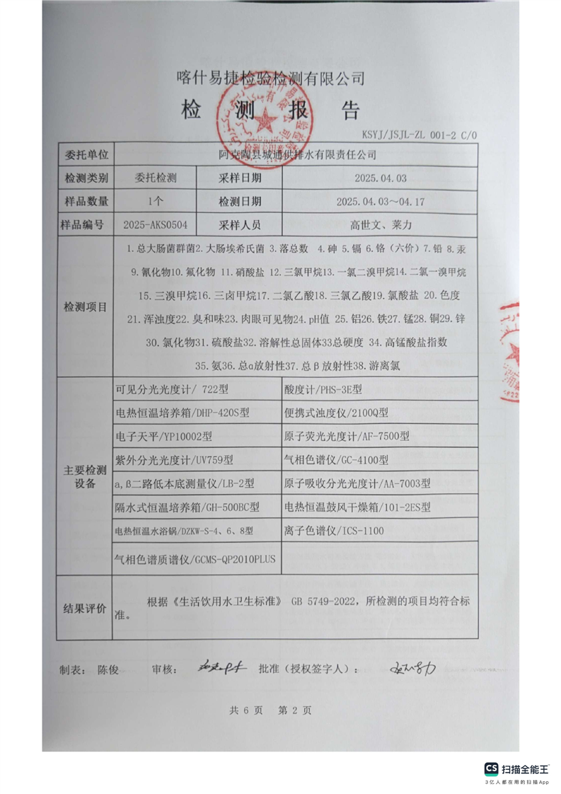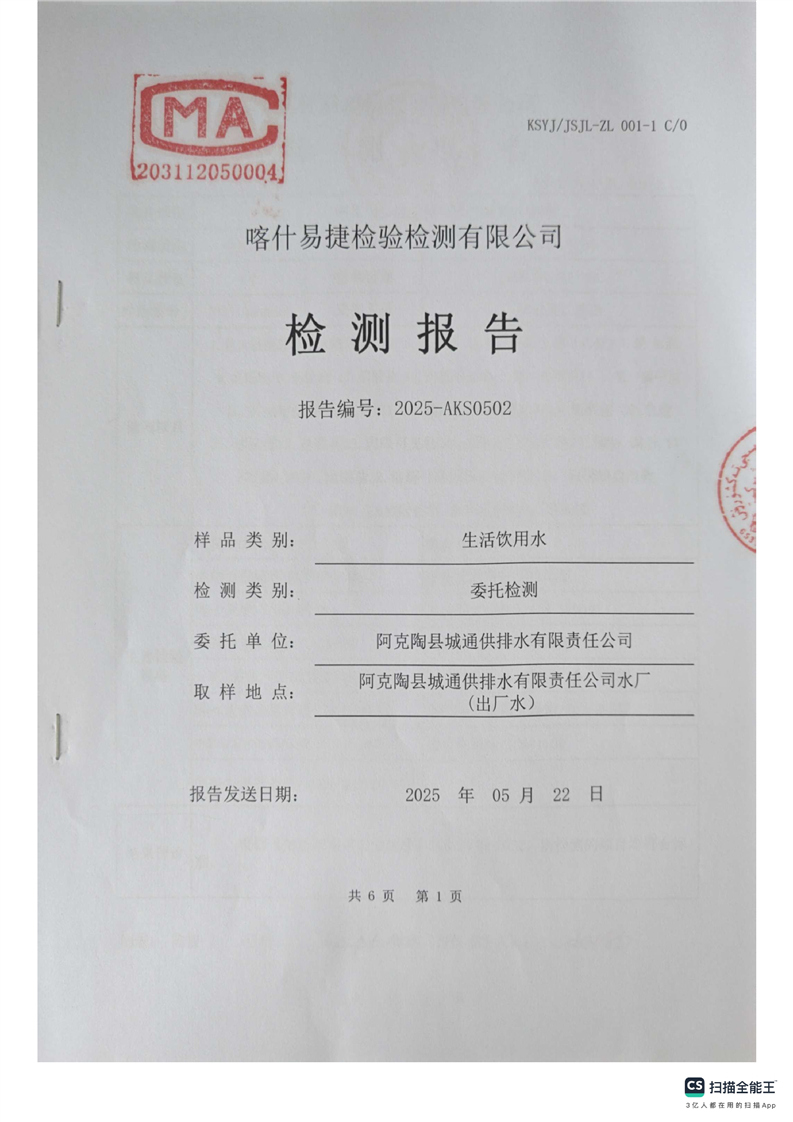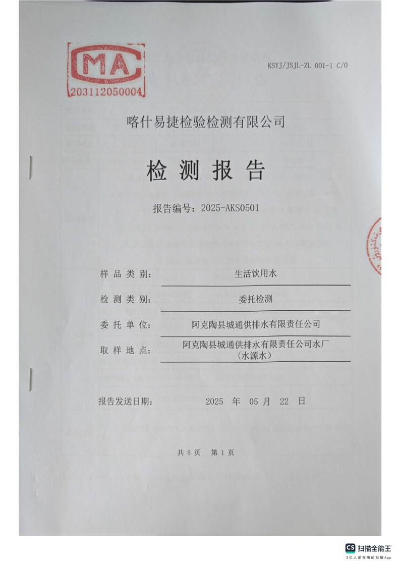 | 主 题 词 | 生活饮用水检测报告 | 成文日期 | 2025-05-22 18:42 |
