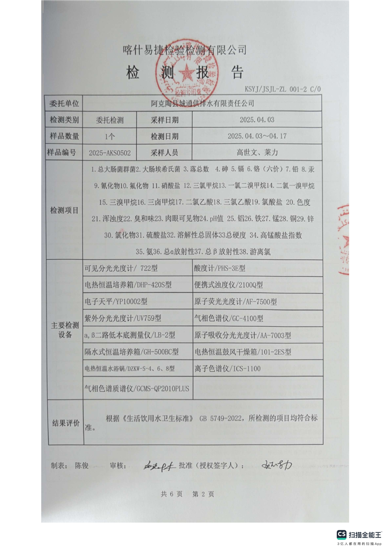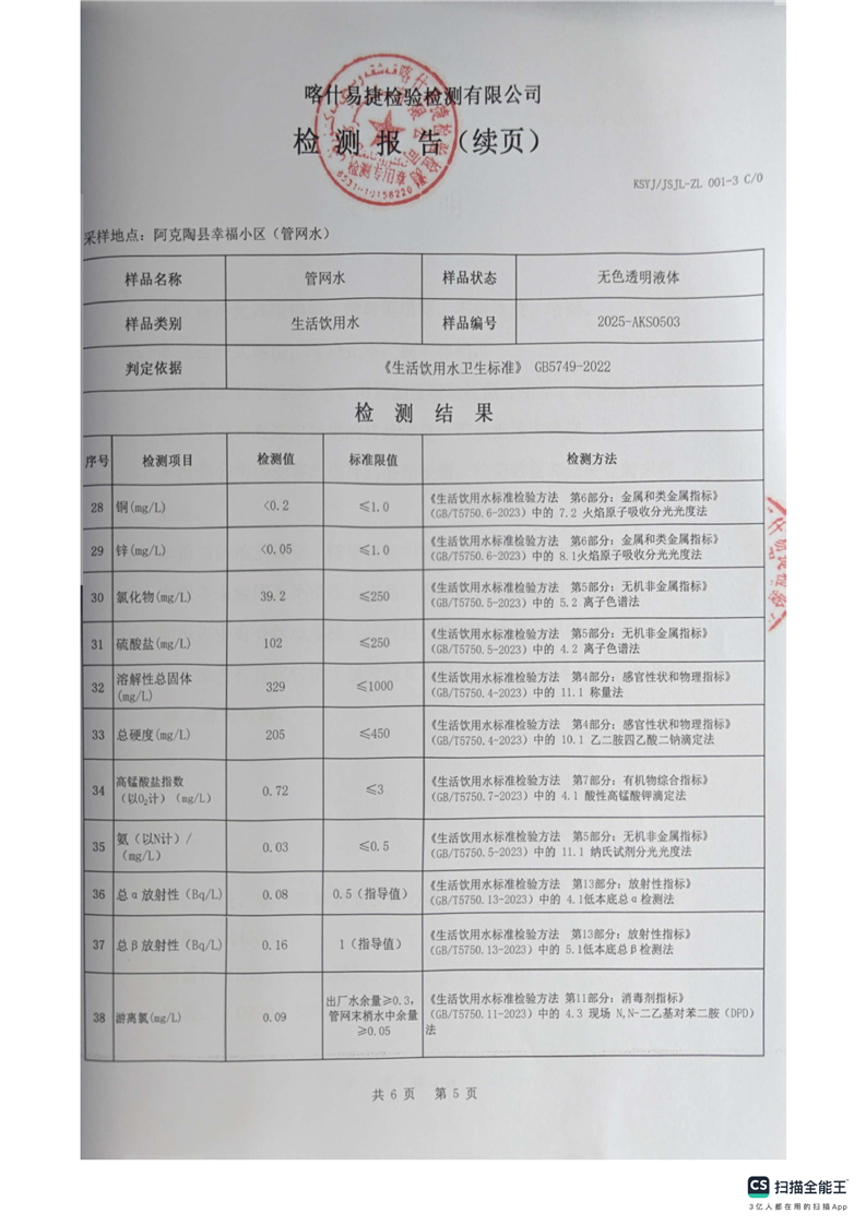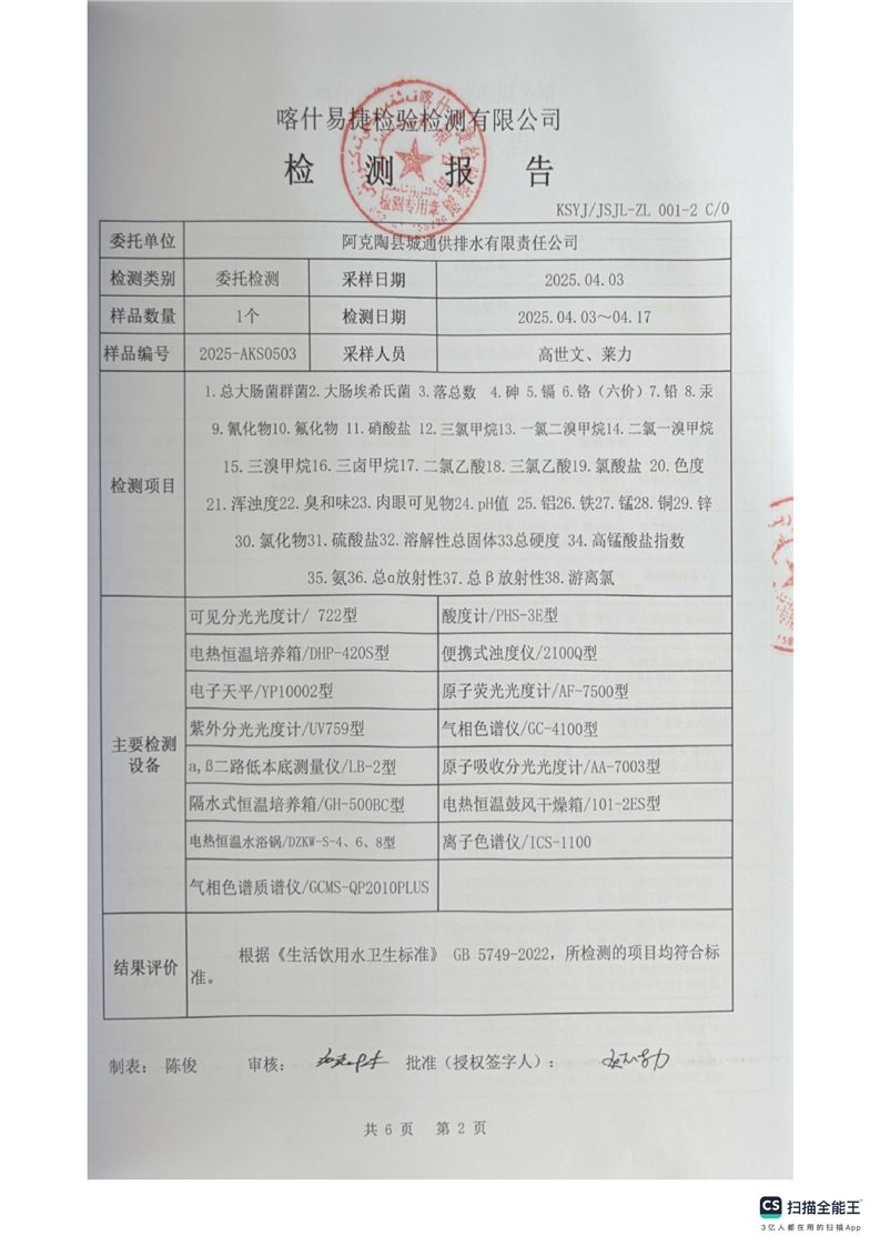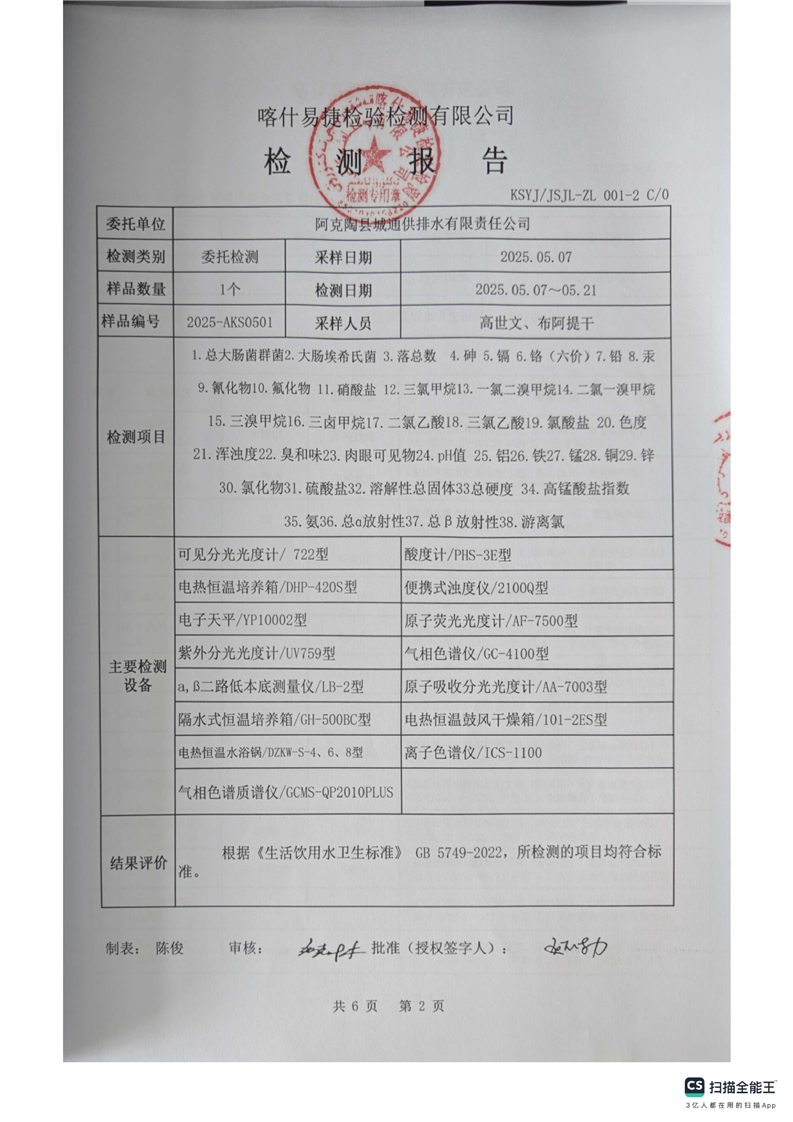 | 主 题 词 | 生活饮用水检测报告 | 成文日期 | 2025-05-22 18:42 |