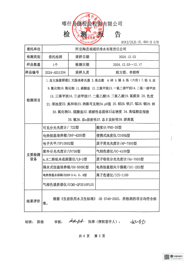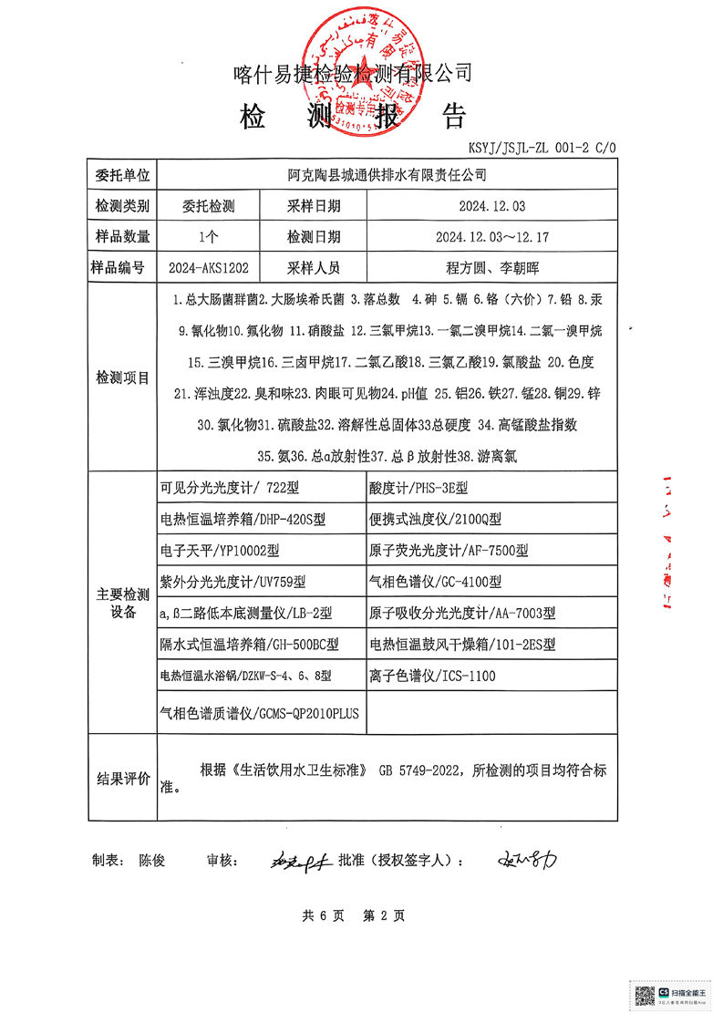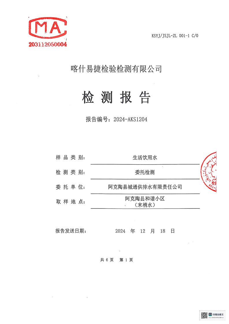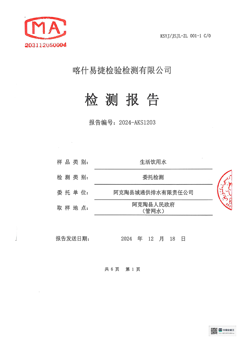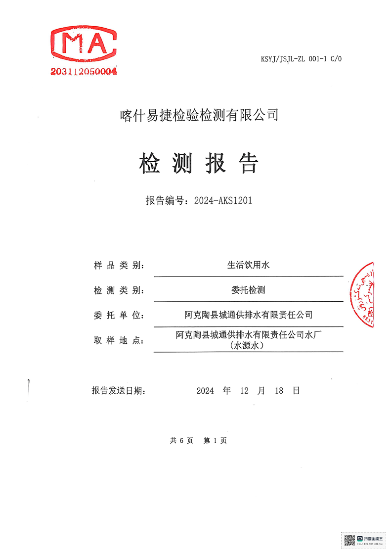 | 主 题 词 | 生活饮用水检测报告 | 成文日期 | 2024-12-18 19:04 |