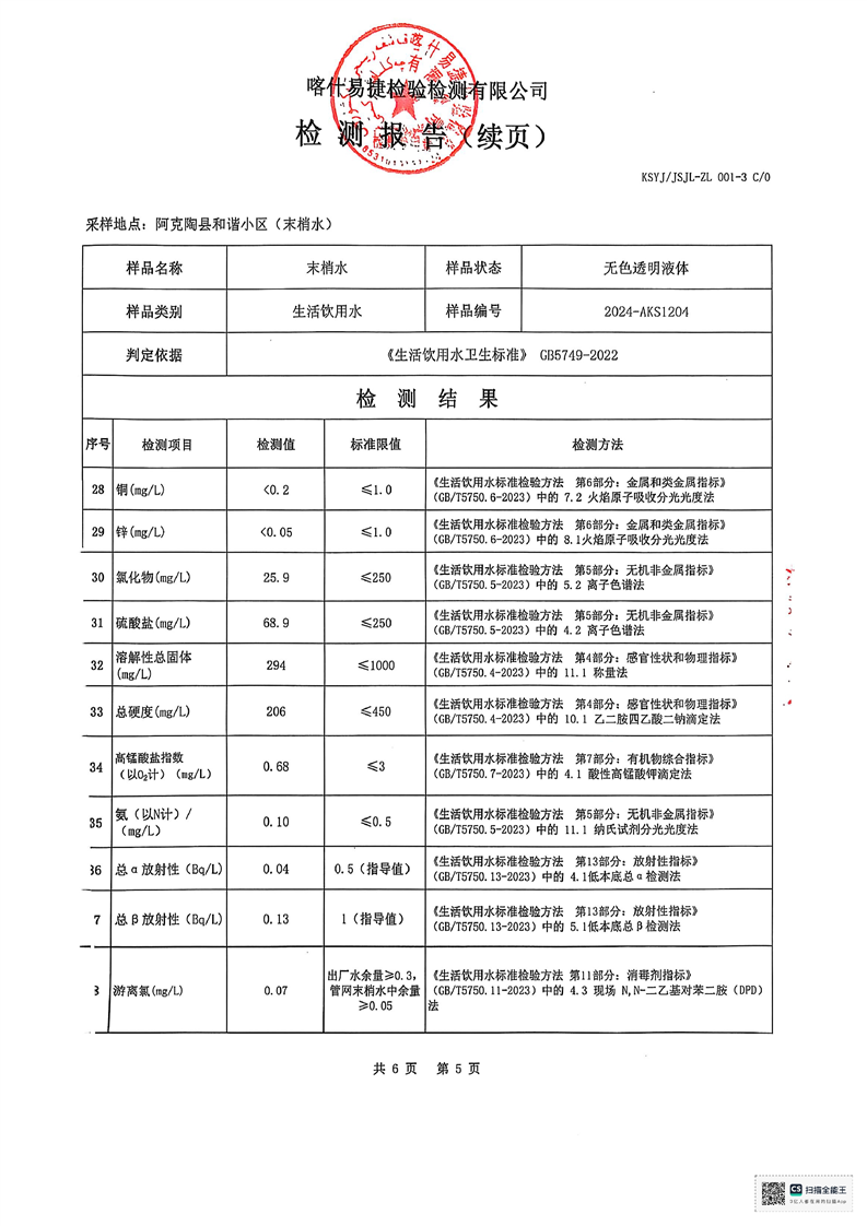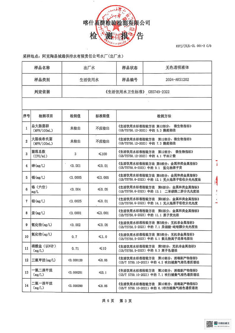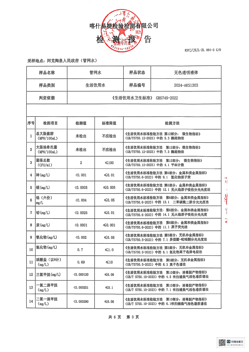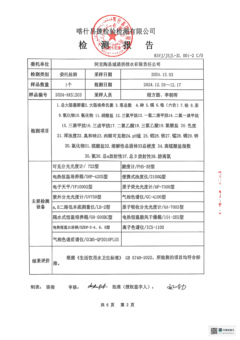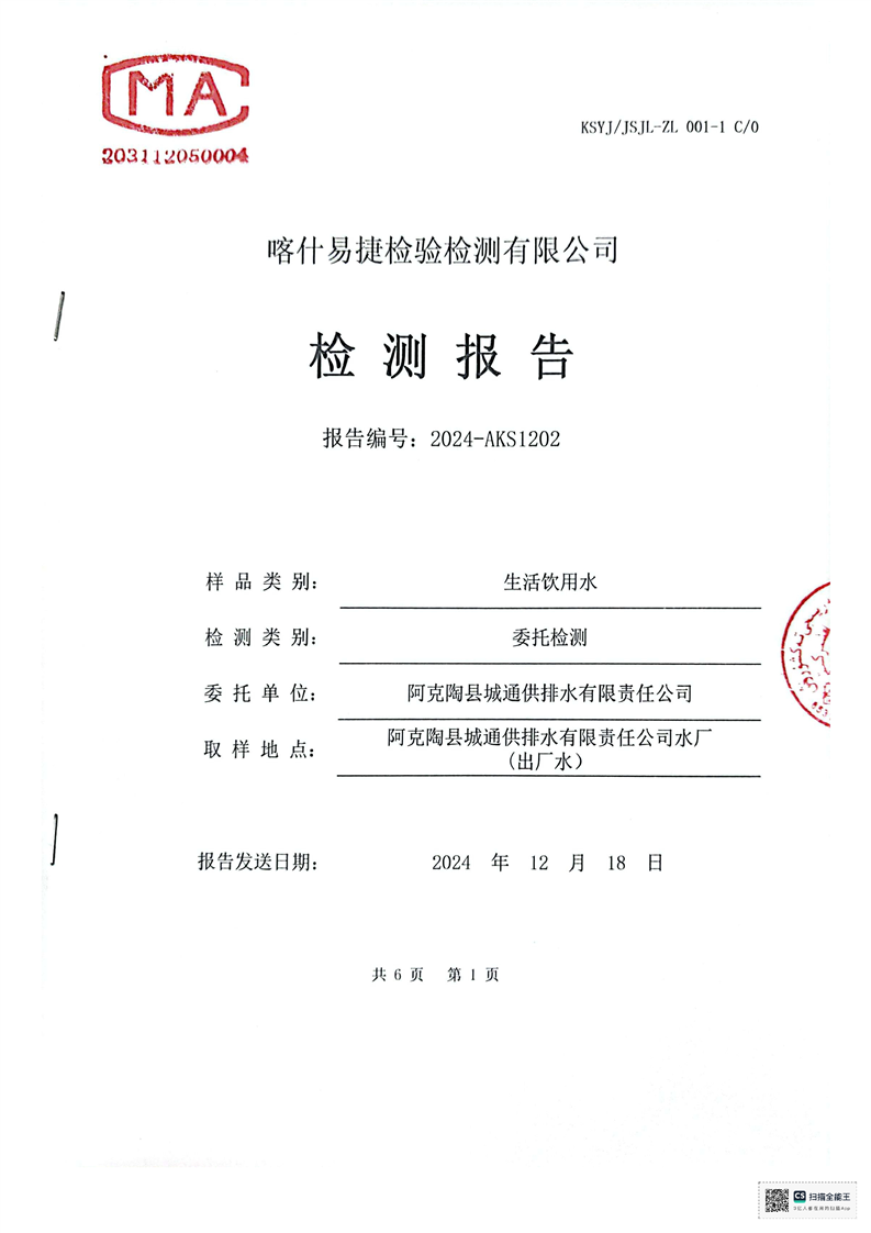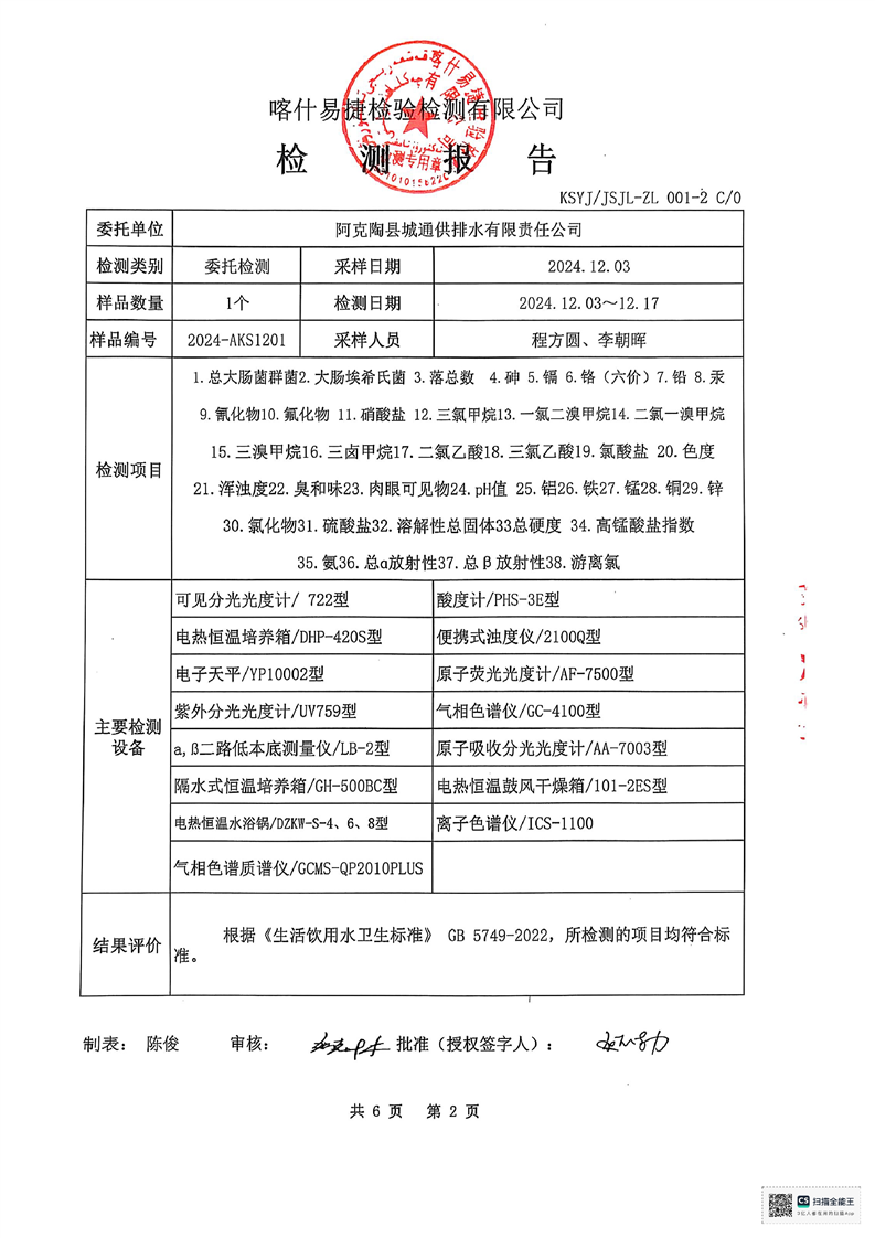 | 主 题 词 | 生活饮用水检测报告 | 成文日期 | 2024-12-18 19:04 |